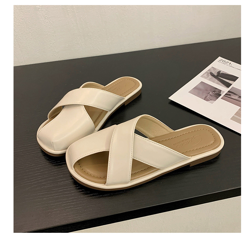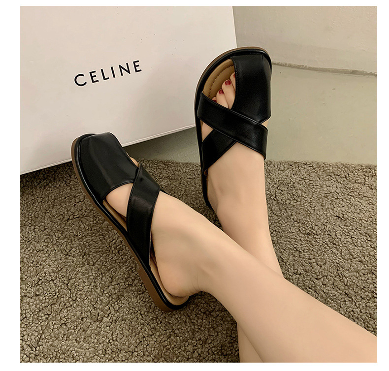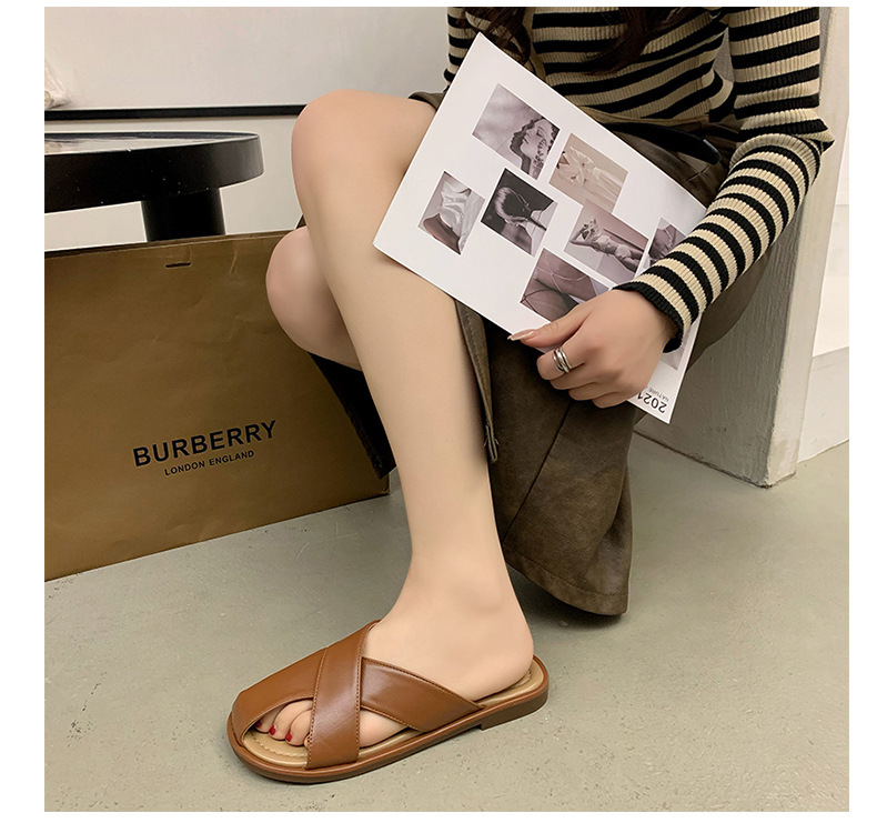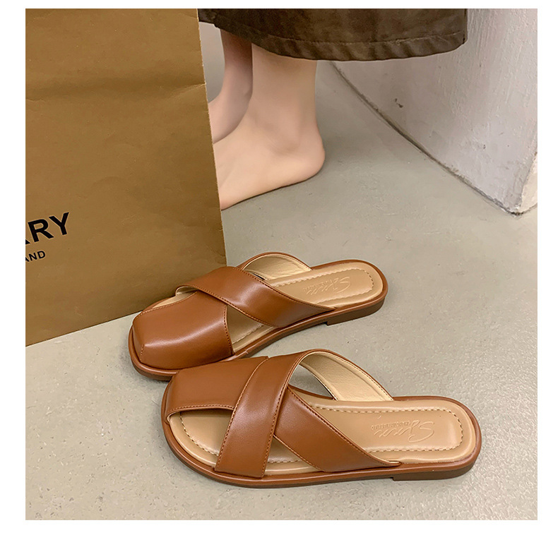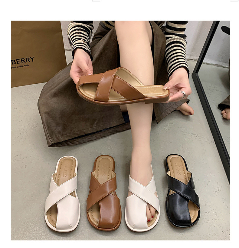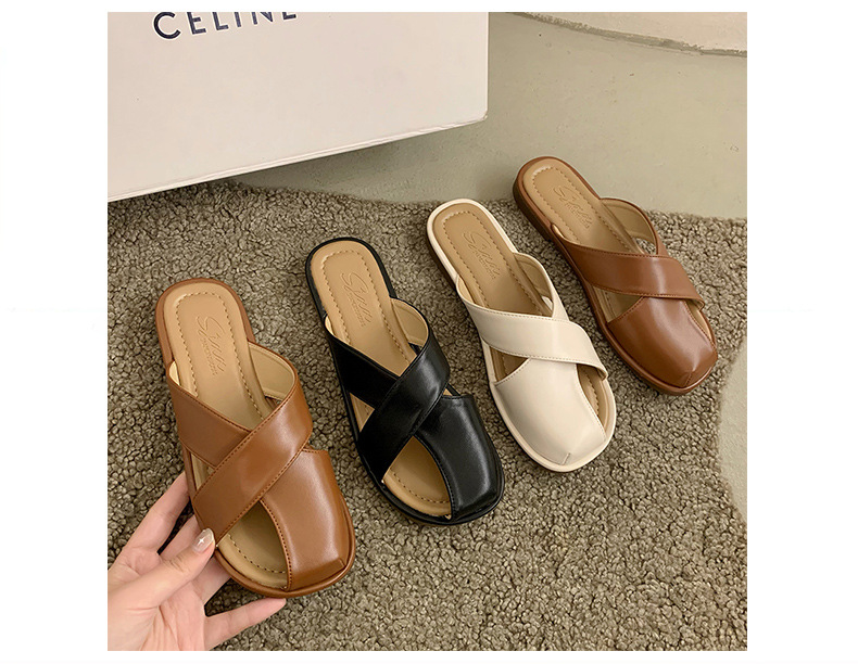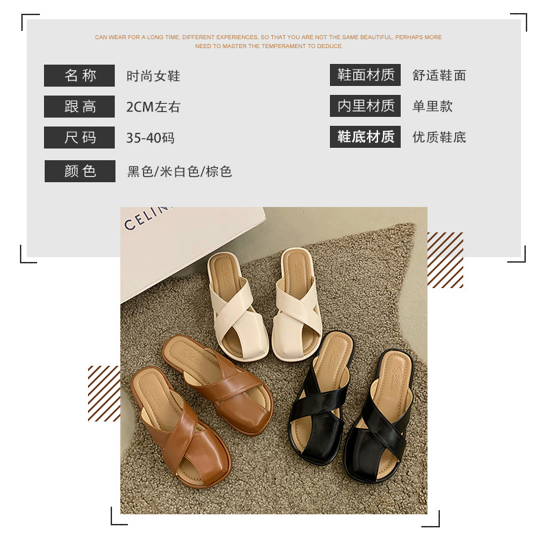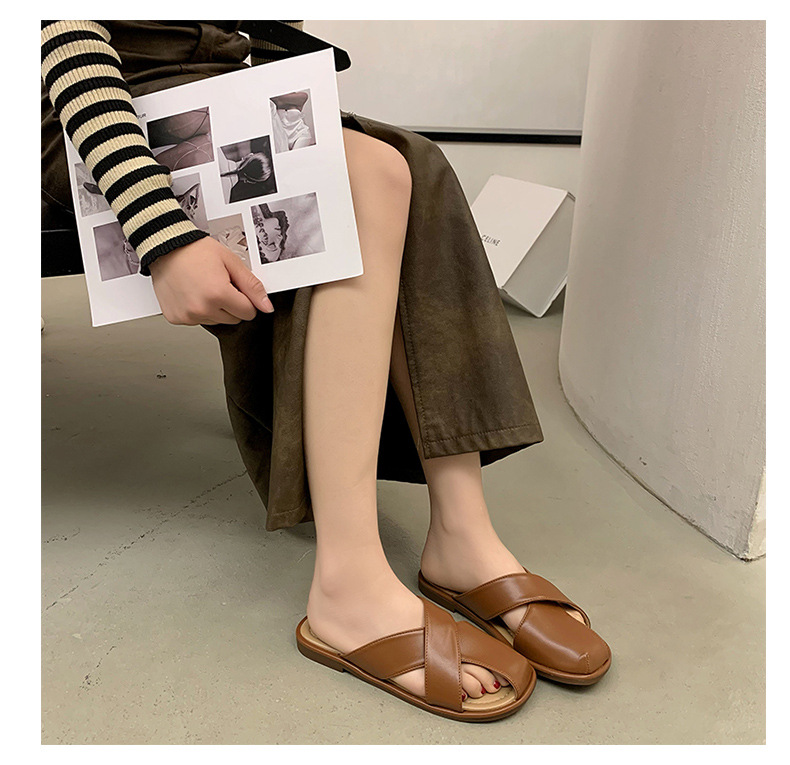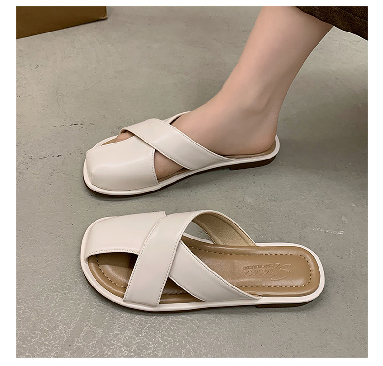 【舒适的内里,上脚亲肤又柔软!】小众设计感平底凉拖鞋女,外穿拖鞋夏新款时尚复古一脚蹬包头拖鞋女,透气不闷臭脚!-QQ