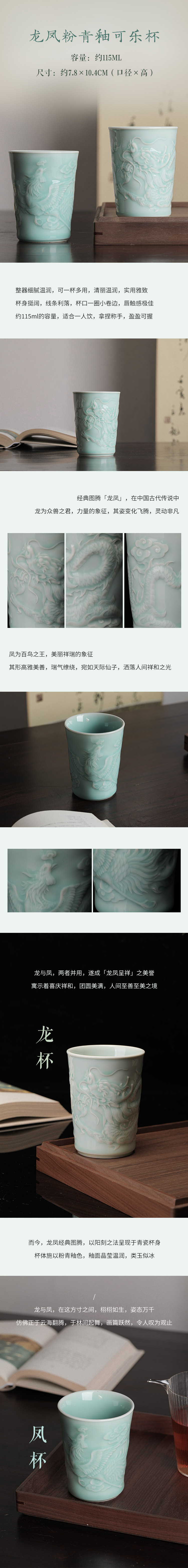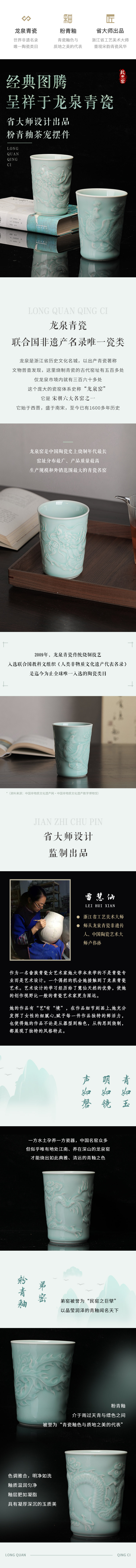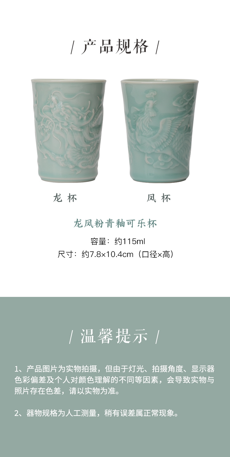 省大师雷慧仙出品龙泉青瓷粉青釉龙凤对杯可乐杯