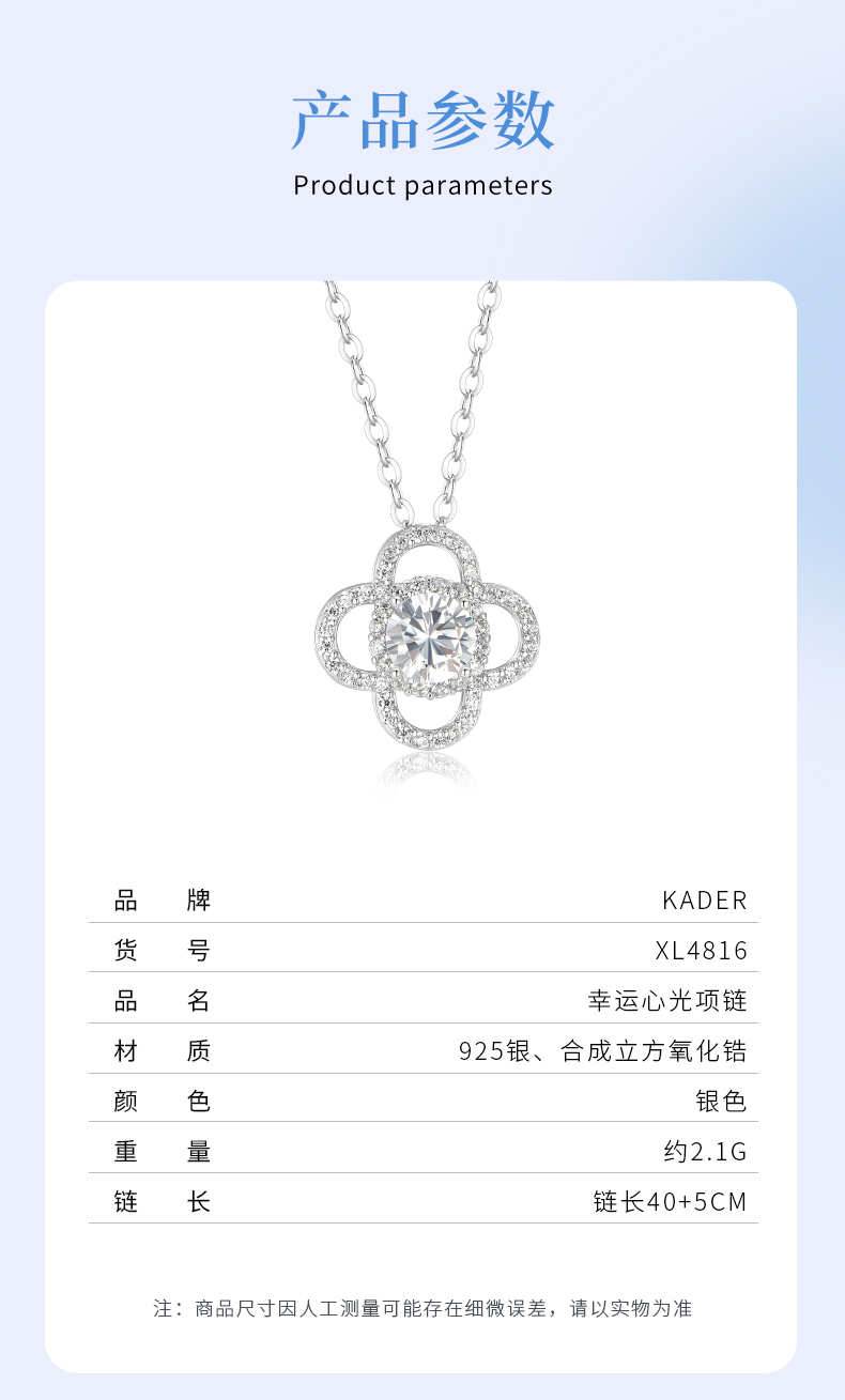 卡蒂罗/KADER 幸运心四叶草项链 简约小众轻奢设计感吊坠 镶嵌大颗宝石 女生朋友礼盒装214情人