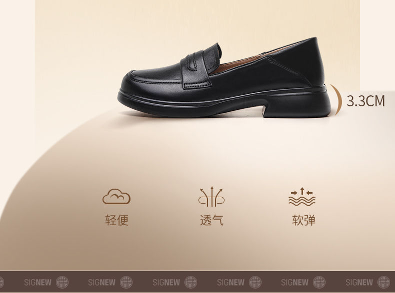 信诺乐福鞋女2024年新款英伦风一脚蹬舒适百搭女士软底单鞋小皮鞋24C8681-7T