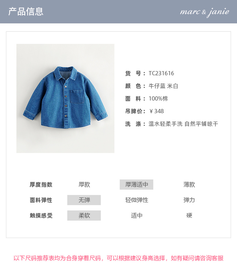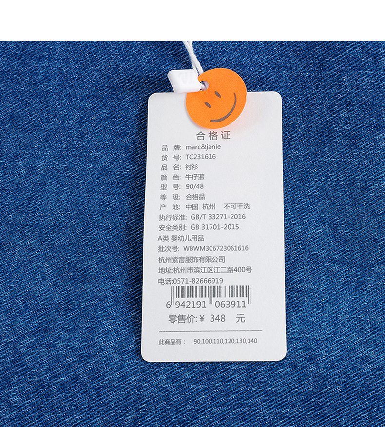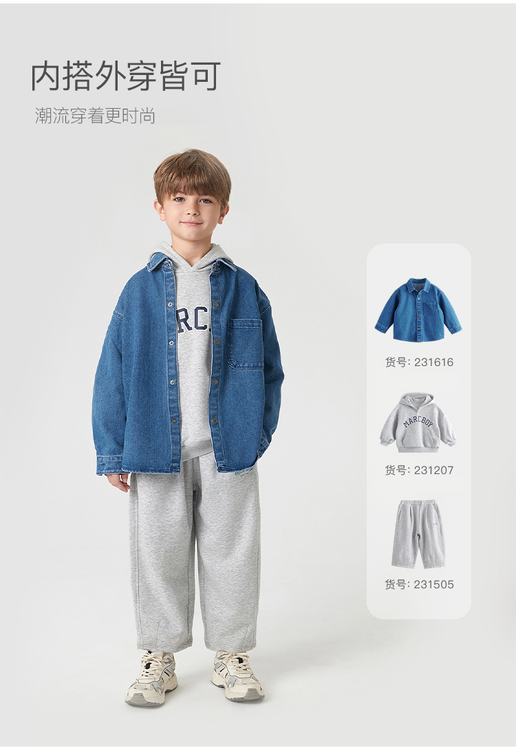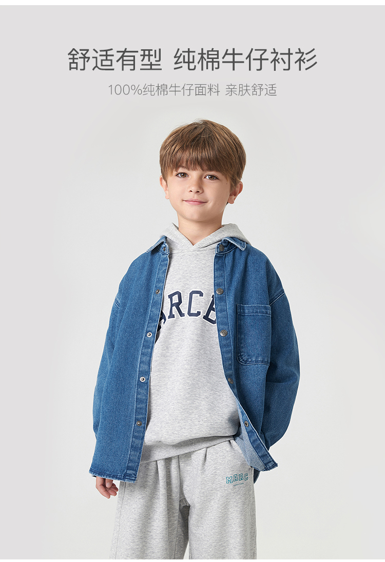 马克珍妮秋装新款 男童笑脸口袋全棉牛仔衬衫 儿童衬衣231616