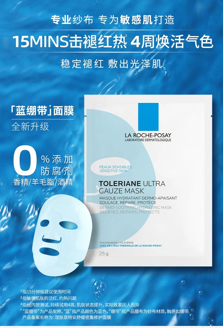 【敏感肌可选】法国 理肤泉 特安蓝绷带纱布快速退红舒缓保湿面膜 5片