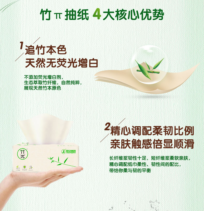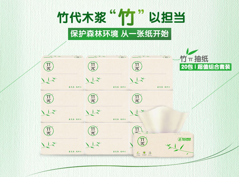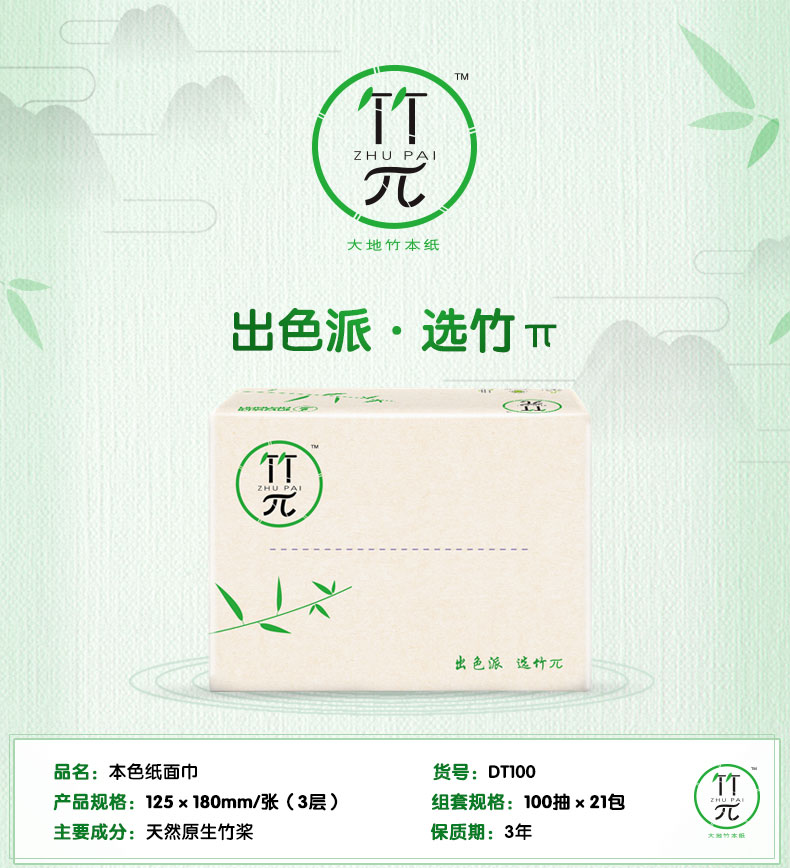 DT100商用(竹π)心相印三层塑装纸面巾(21包)
