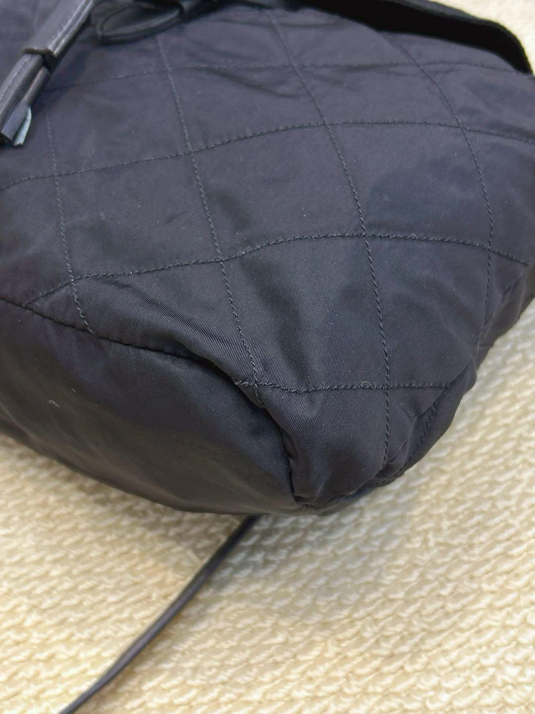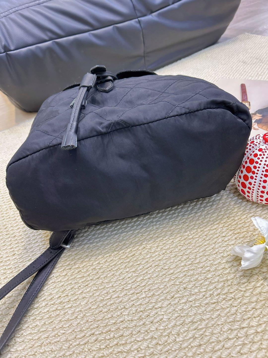 【商品详情】正品二手 Prada 黑色 降落伞布 双肩包🔪 93新 30×17 肩带与抽绳油边处有干纹和使用裂 金属轻微使用氧化 超高性价比