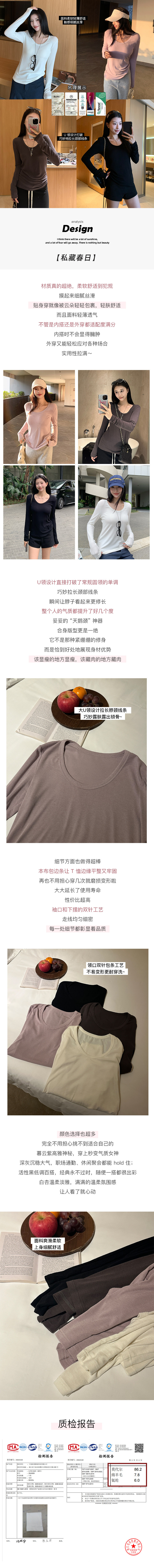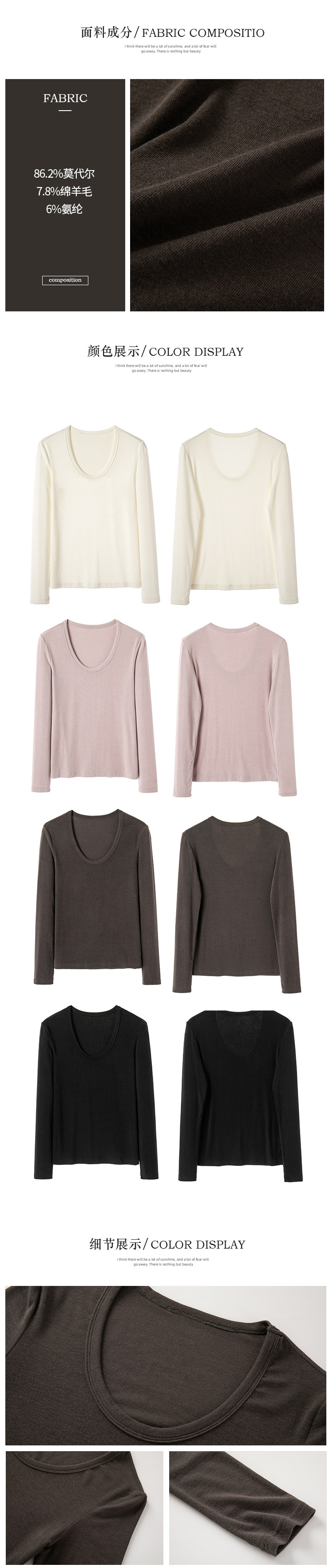EKOOL衣库 莫代尔U领长袖T恤女春季新款轻薄透气百搭修身显瘦上衣