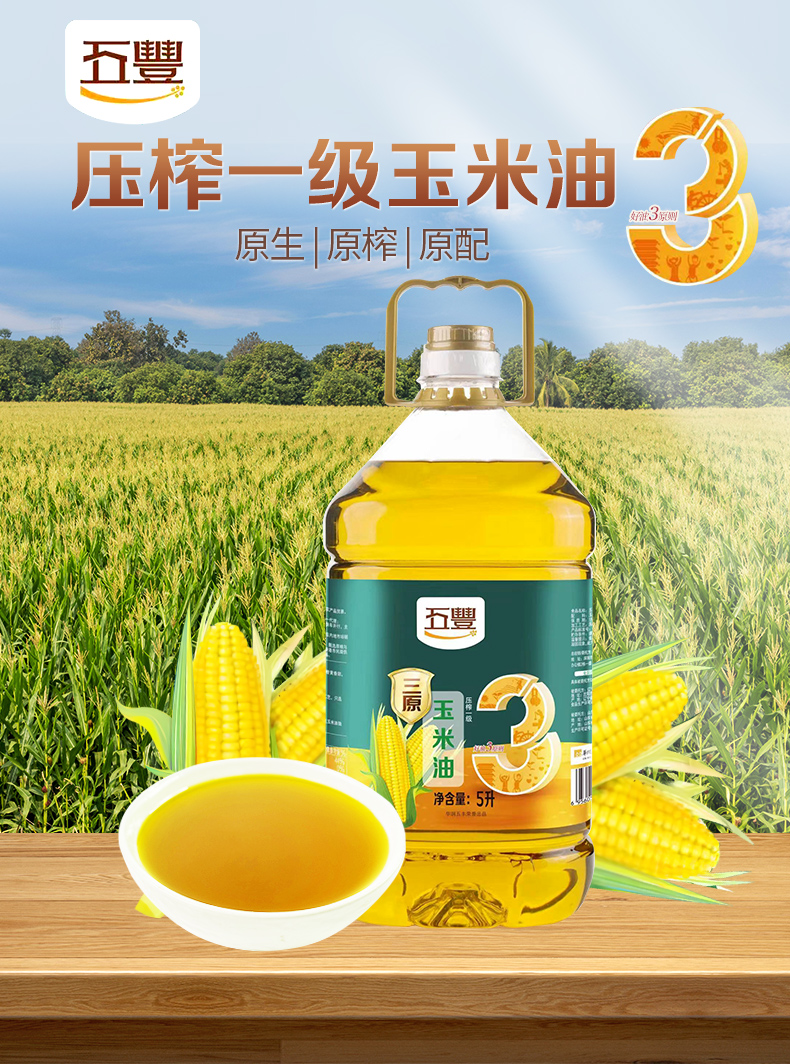 五丰三原压榨玉米油5L