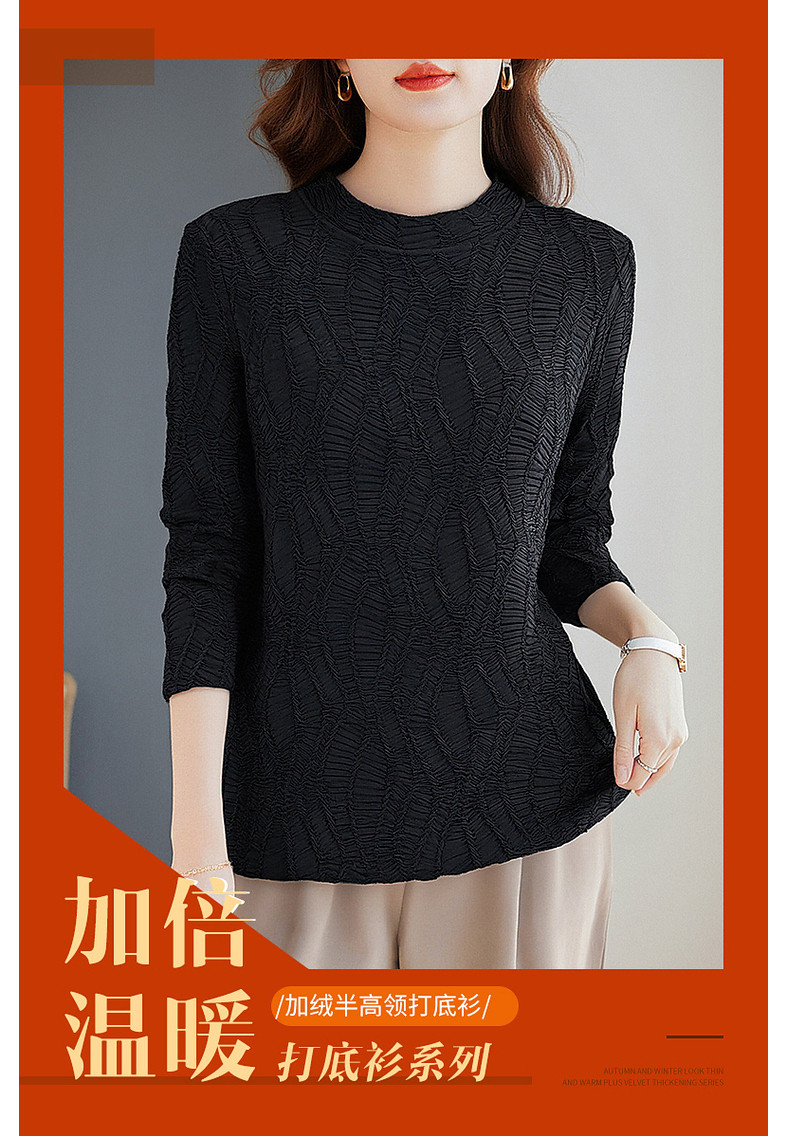 半高领打底衫女长袖新款冬装巨好看流行t恤加绒保暖女装黑色上衣