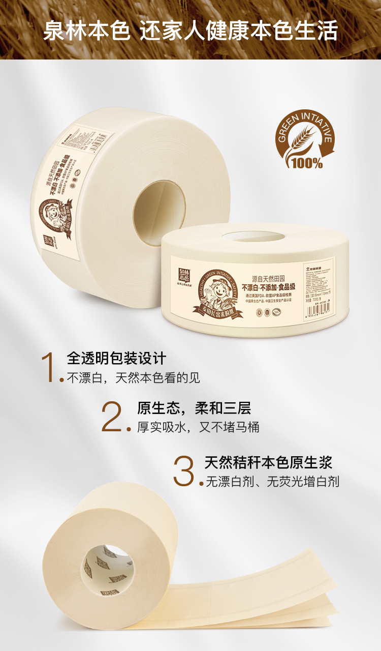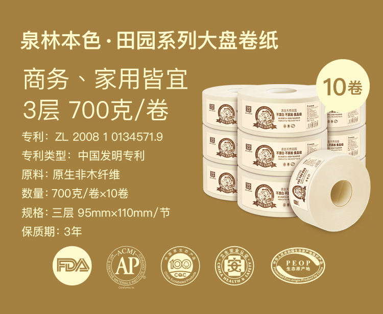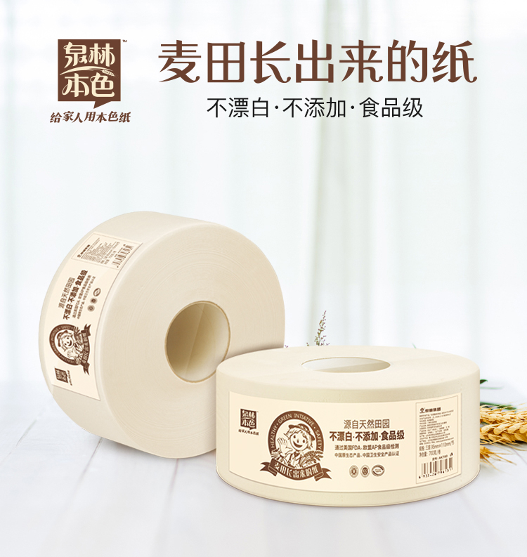 泉林本色商用纸 不漂白3层700克*10卷(本色大盘卫生厕卷纸 珍宝纸 商场酒店物业办公卫生纸厕纸)整箱销售