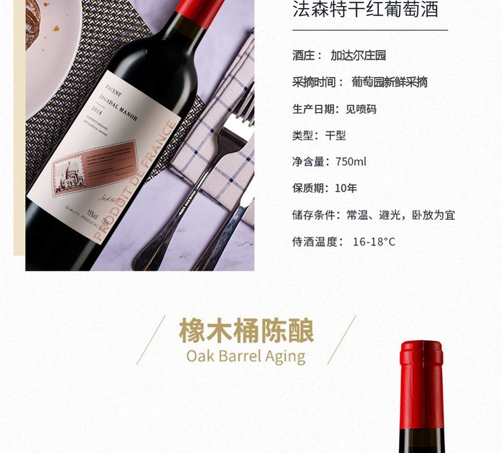 法国加达尔庄园法森特稀有15度干红葡萄酒750ml/1瓶/2瓶6瓶整箱