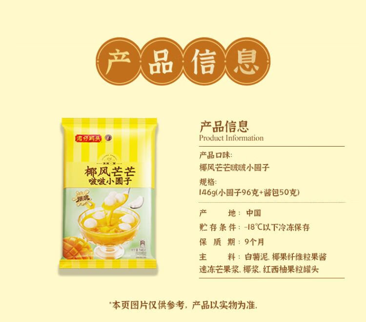 湾仔 纯牛乳茶芋泥啵啵小圆子 椰风芒芒啵啵小圆子 146g