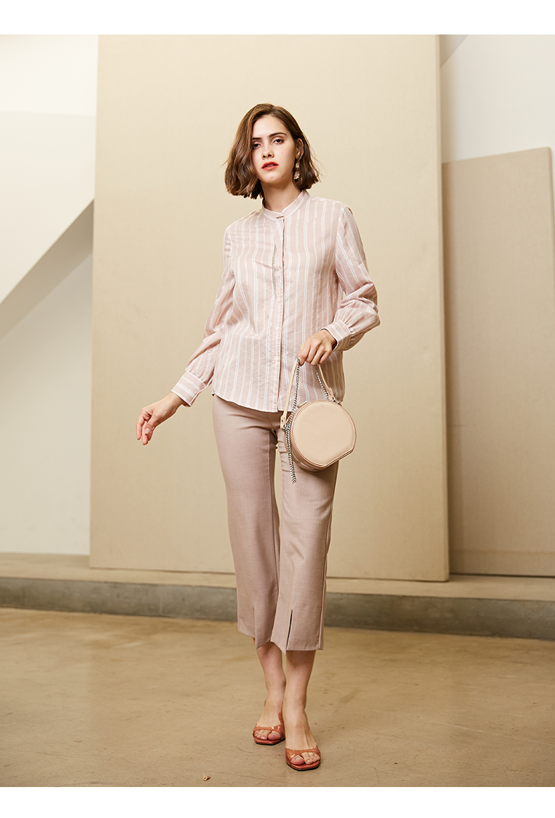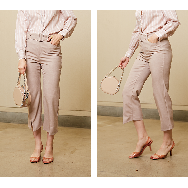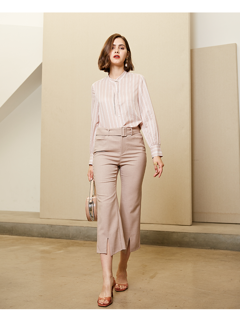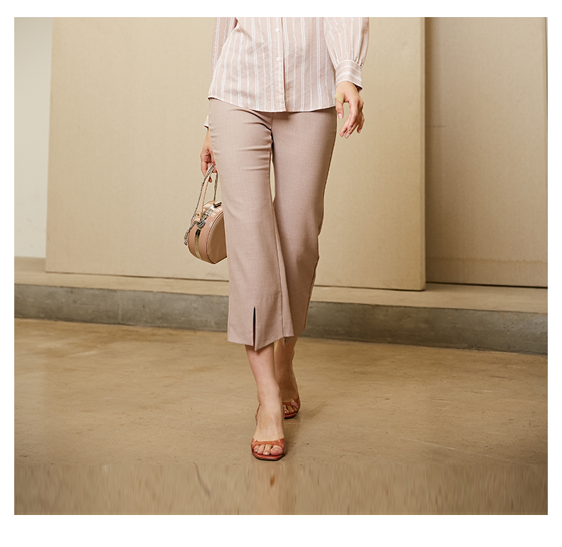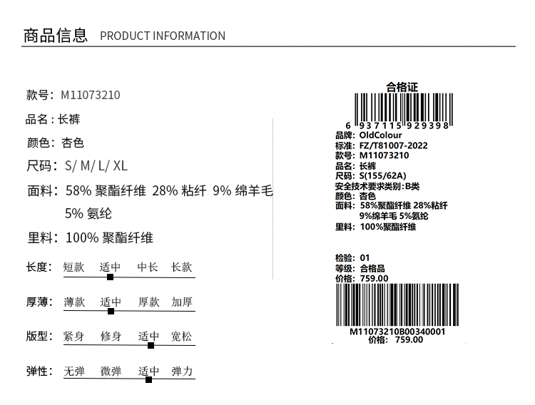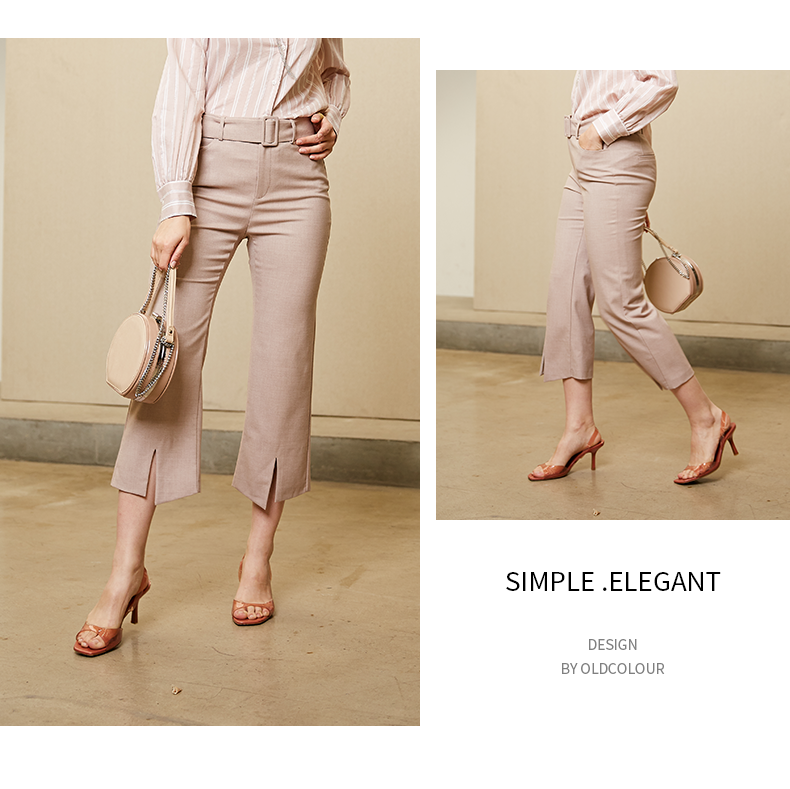oldcolour简约休闲裤春季新款松紧高腰阔腿直筒长裤女P11073409