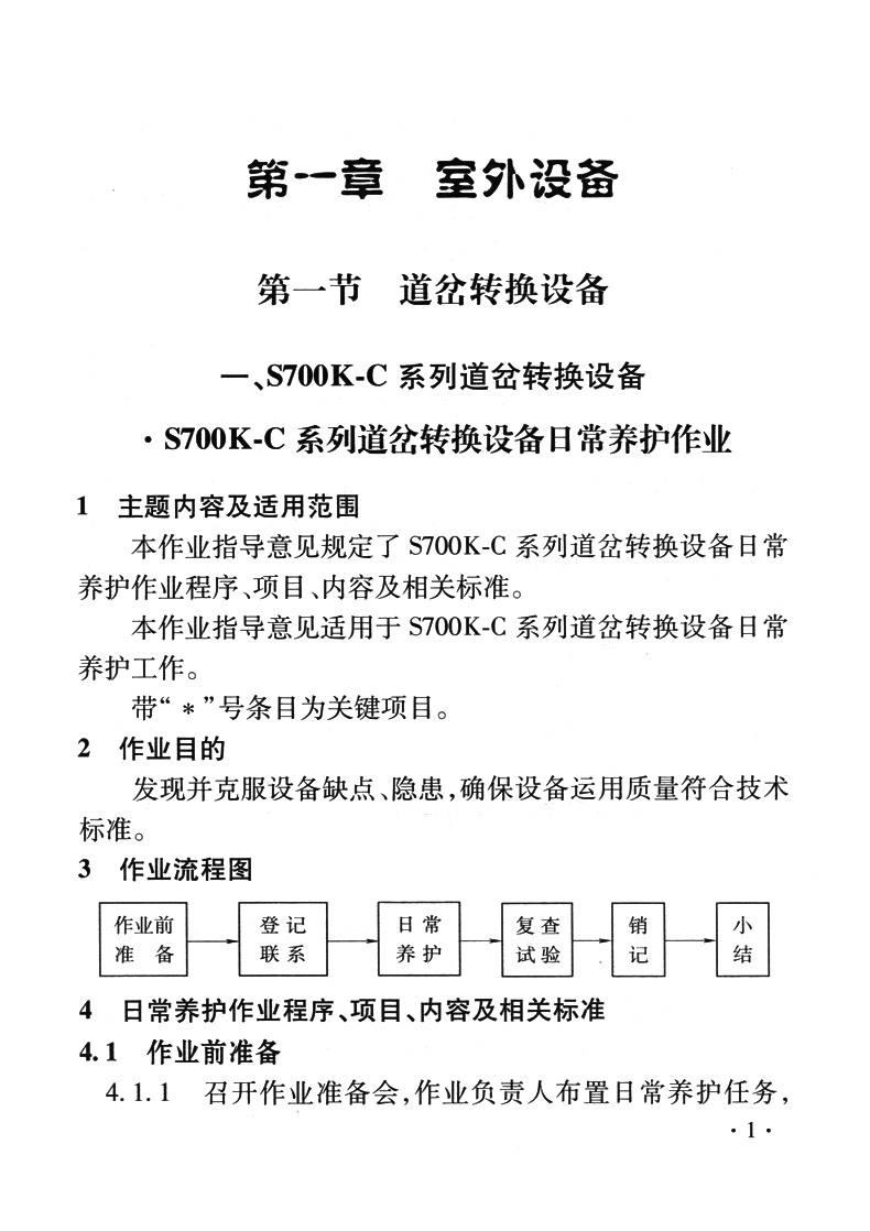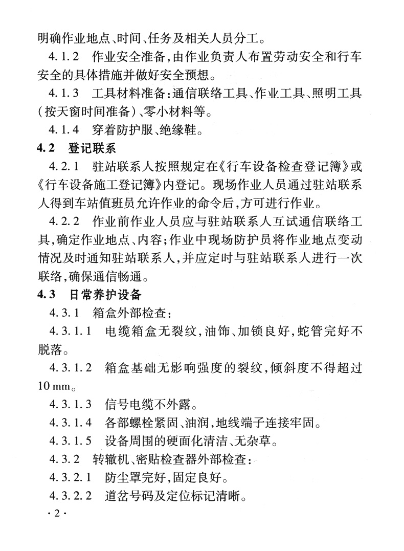 为满足中国铁路运营管理要求,规范普速铁路设备维护作业程序,在充分吸取和总结了铁路局普速铁路信号设备维护经验基础上,对《普速铁路信号作业指导意见》进行了修订。本指导意见修订内容涵盖了普速铁路信号室外设备、车站室内设备、检修修配器材、机车信号、LKJ、GYK等主要设备日常养护、检修作业的程序、内容、步骤及方法,以及数据换装、数据分析、人身安全作业防护等内容。按照主题内容及适用范围、作业目的、作业流程图、日常养护作业程序、项目、内容及相关标准、安全控制措施的统一格式编制。