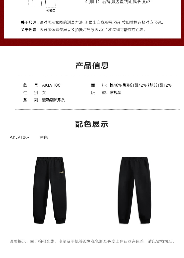李宁-日进斗金系列女子束脚卫裤AKLV106