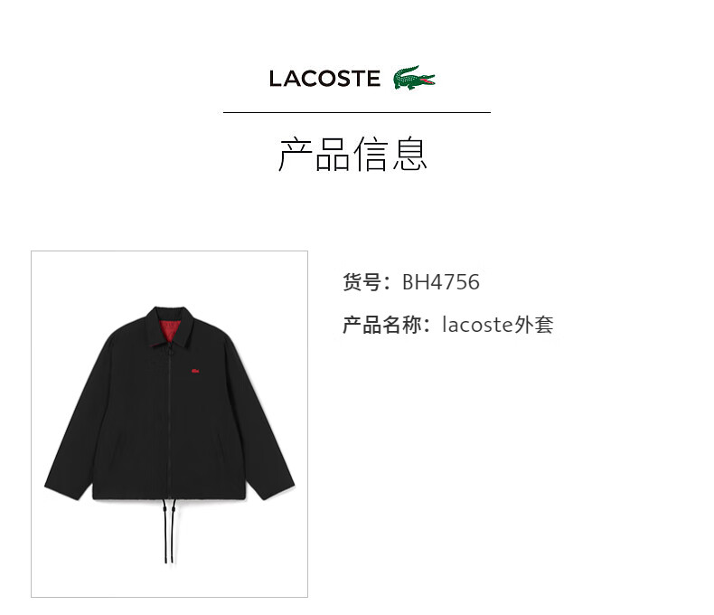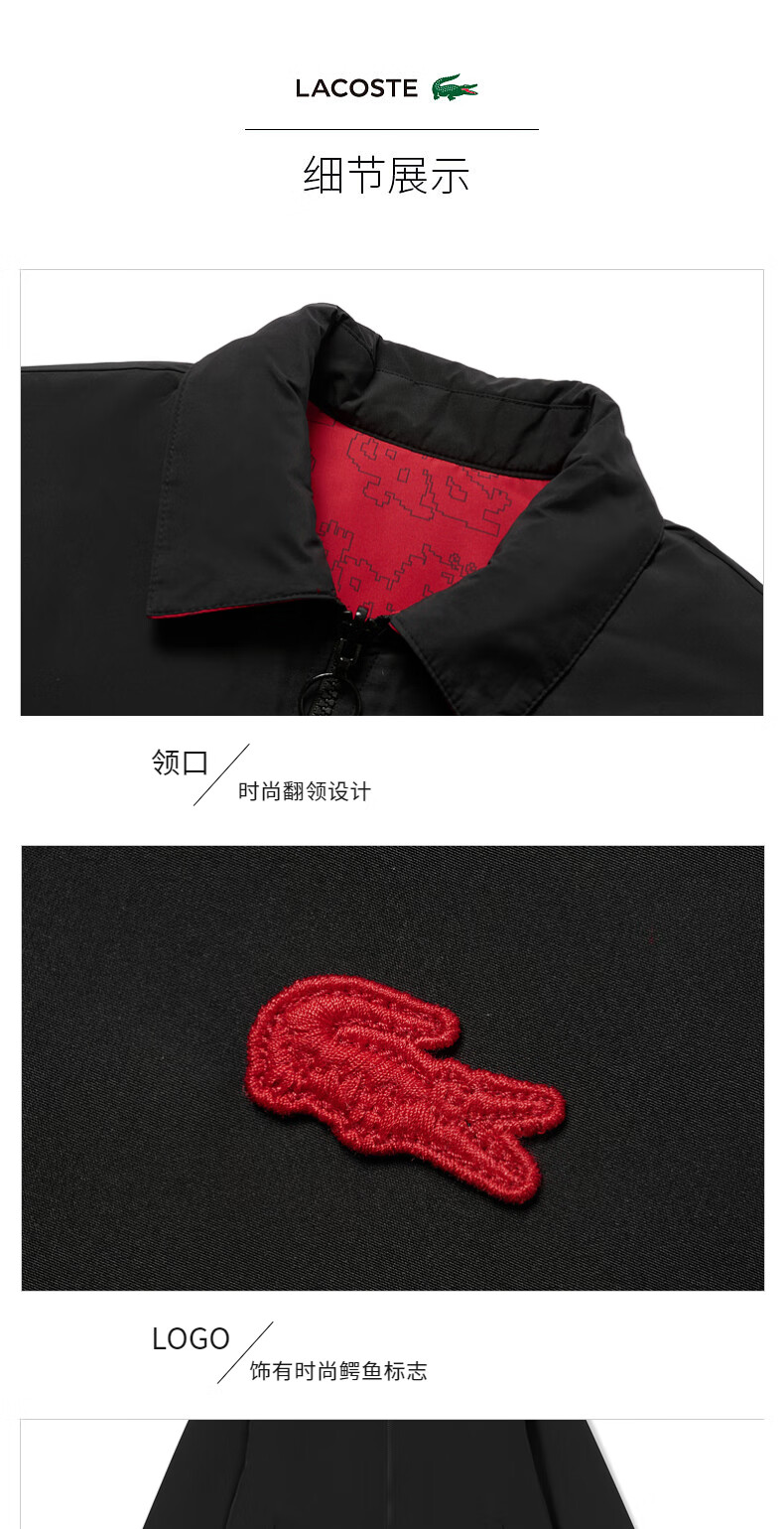 Lacoste法国鳄鱼新款龙年新年系列男装双面穿翻领夹克外套BH4756-98