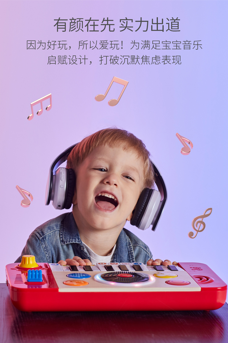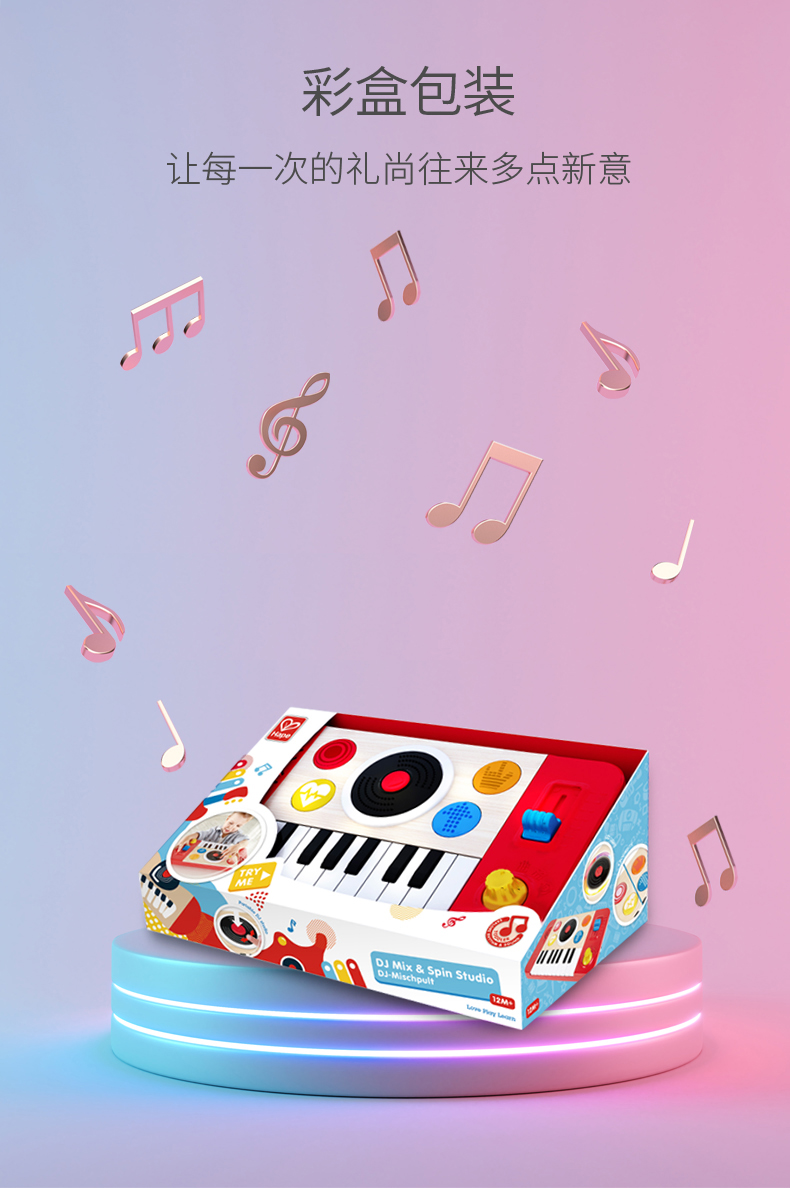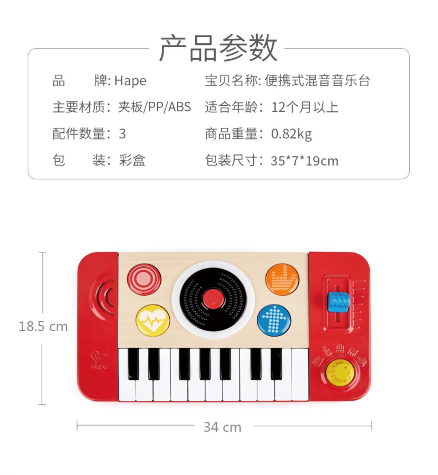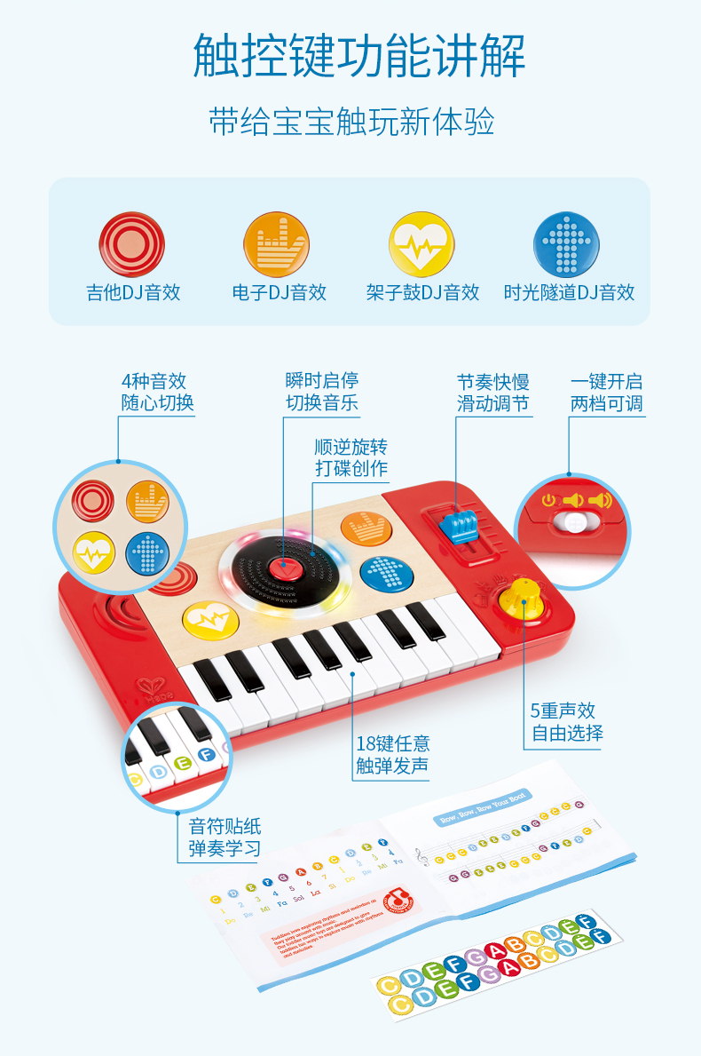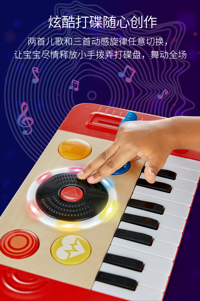 Hape DJ打碟混音台男女孩儿童音乐乐器1岁+早旋律益智玩具木琴发光/HAPE-31135