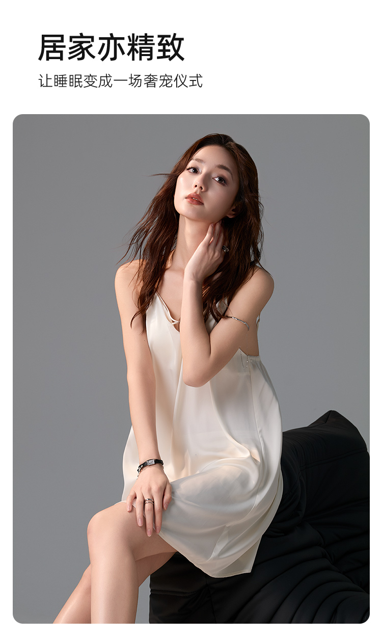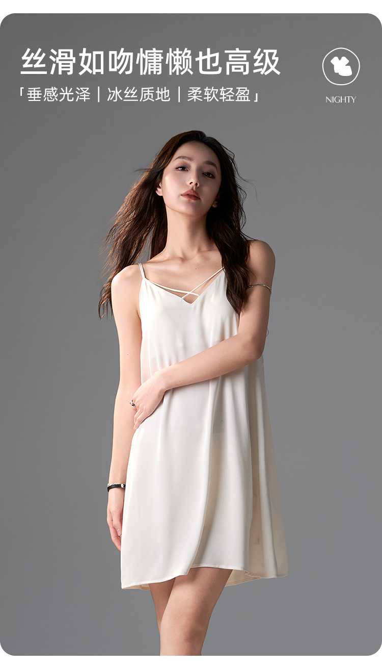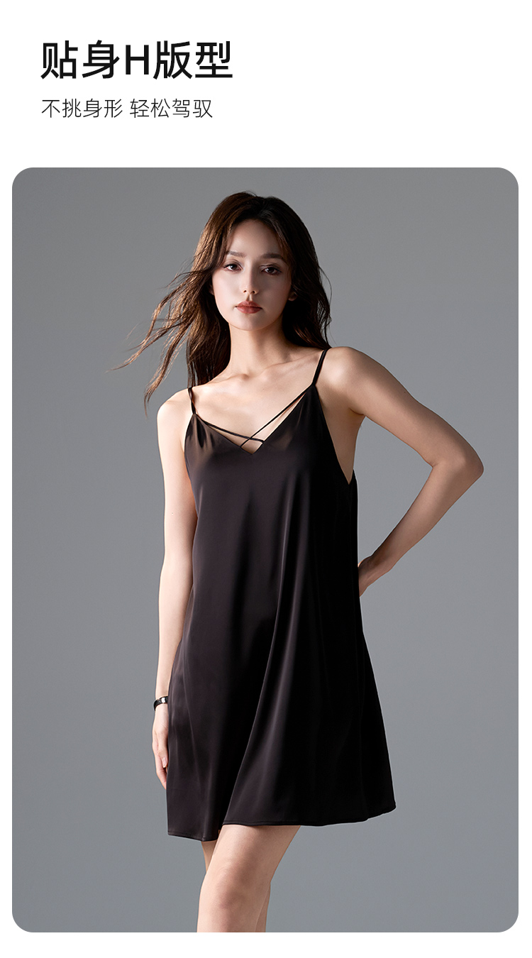皇家丽美女士家居吊带睡裙交叉V领自带胸垫性感舒适JJD925126