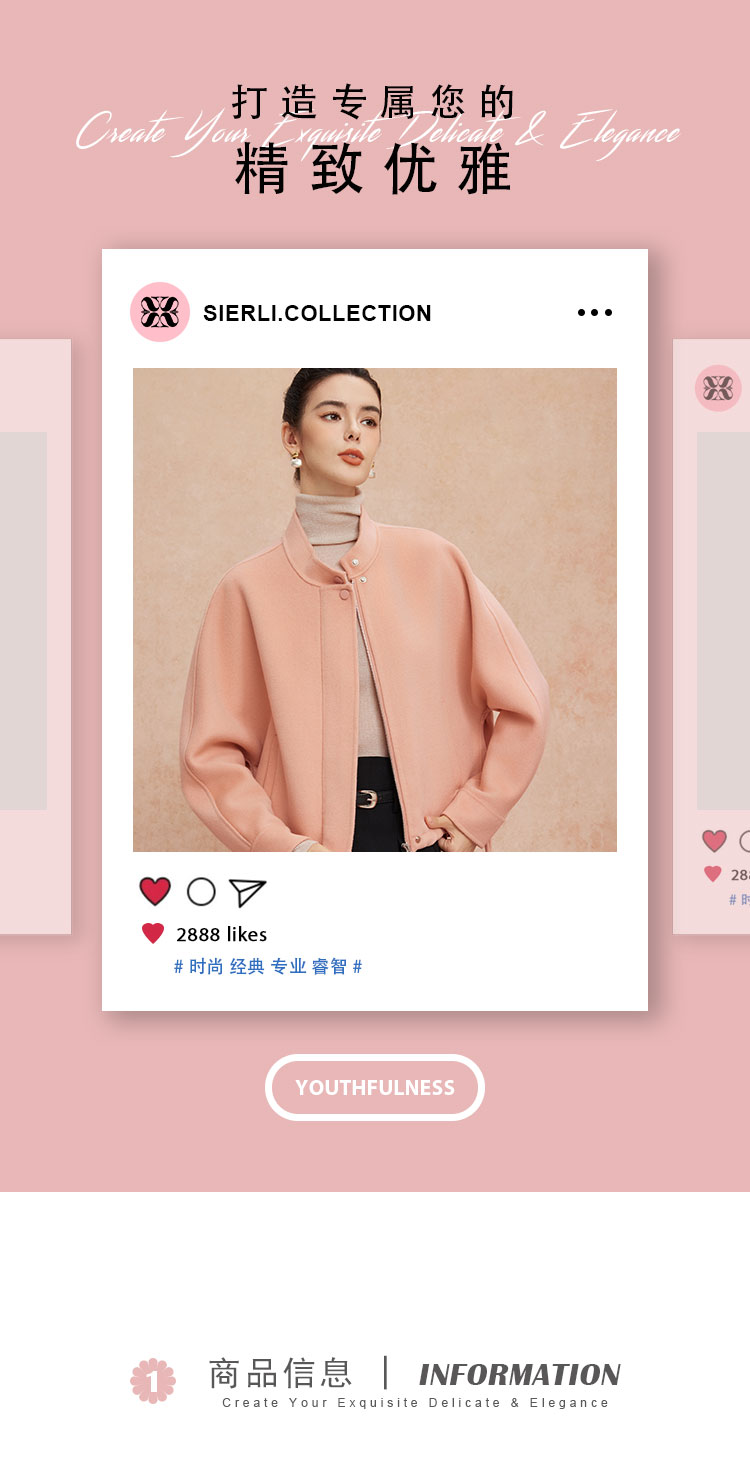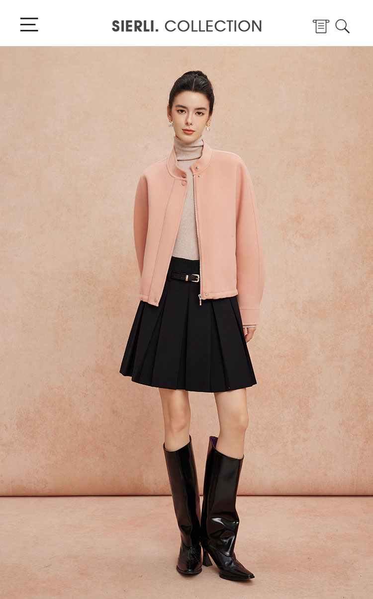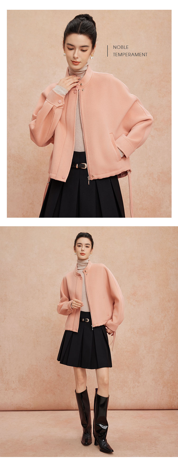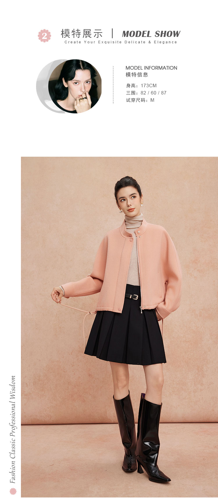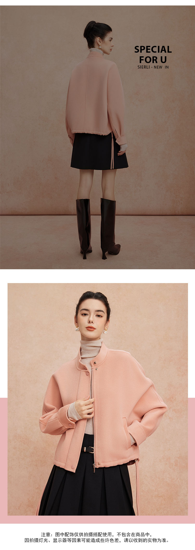 QH905斯尔丽25新款含山羊绒宽松版时尚减龄经典小立领双面呢羊毛大衣