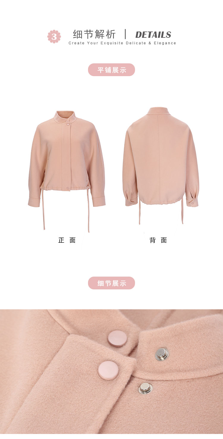 PH9102024新款双面呢短款时尚减龄撞色纽扣显高箱型减龄大衣