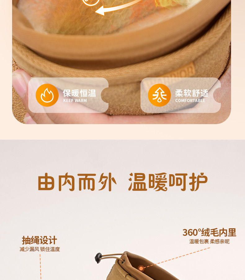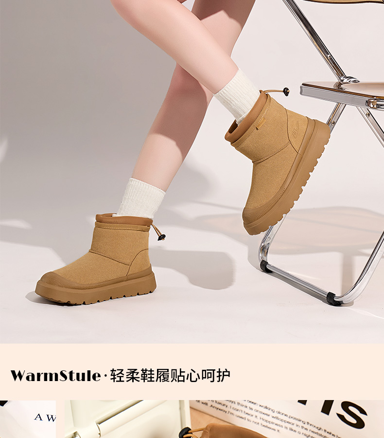 回力雪地靴女款2025冬季新款厚底女鞋大头短靴子加绒加厚保暖棉鞋