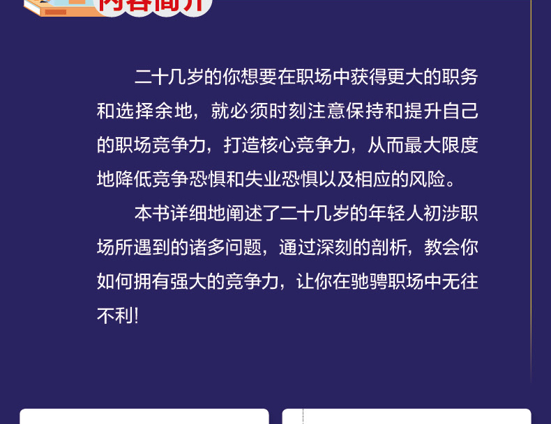 二十几岁的你想要在职场中获得更的职务和选择余地,就须时刻注意保持和提升自己的职场竞争力,打造核心竞争力,从而*限度地降低竞争恐惧和失业恐惧以及相应的风险。