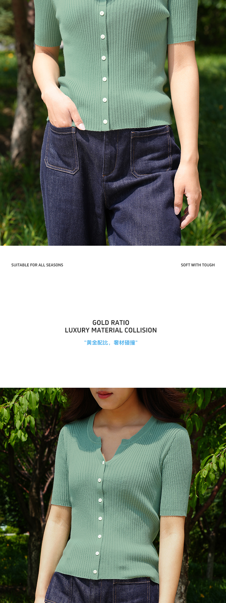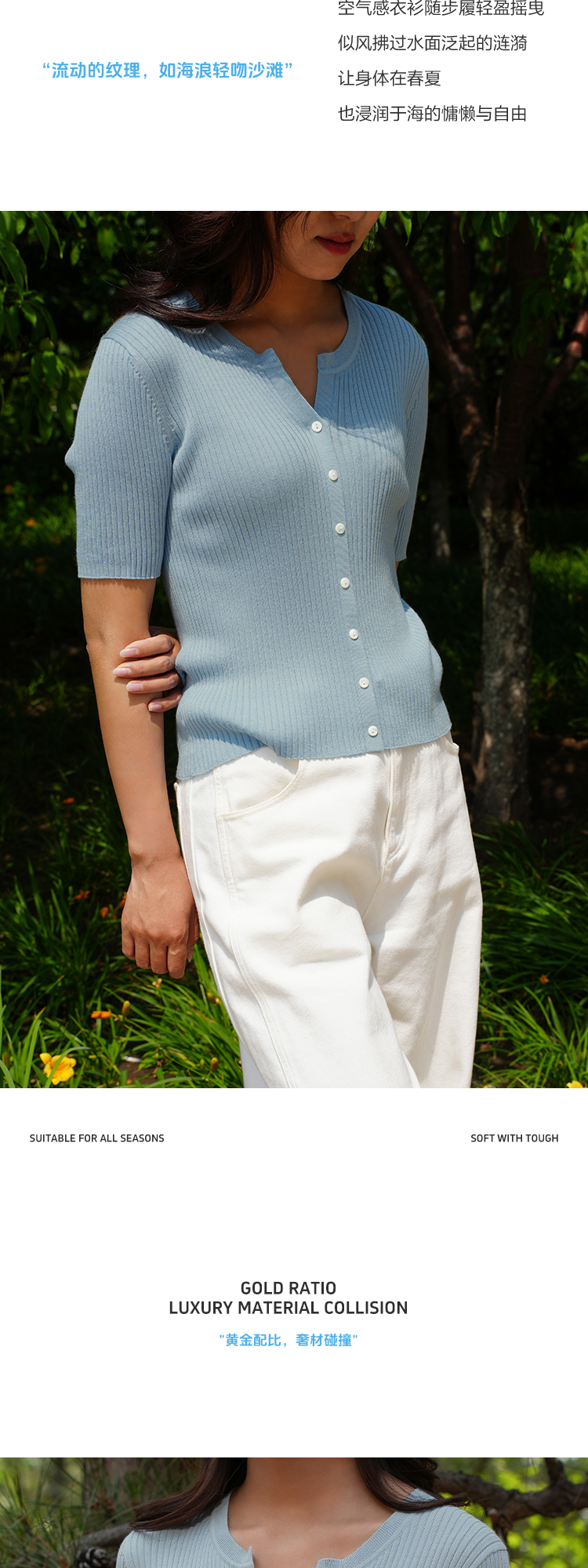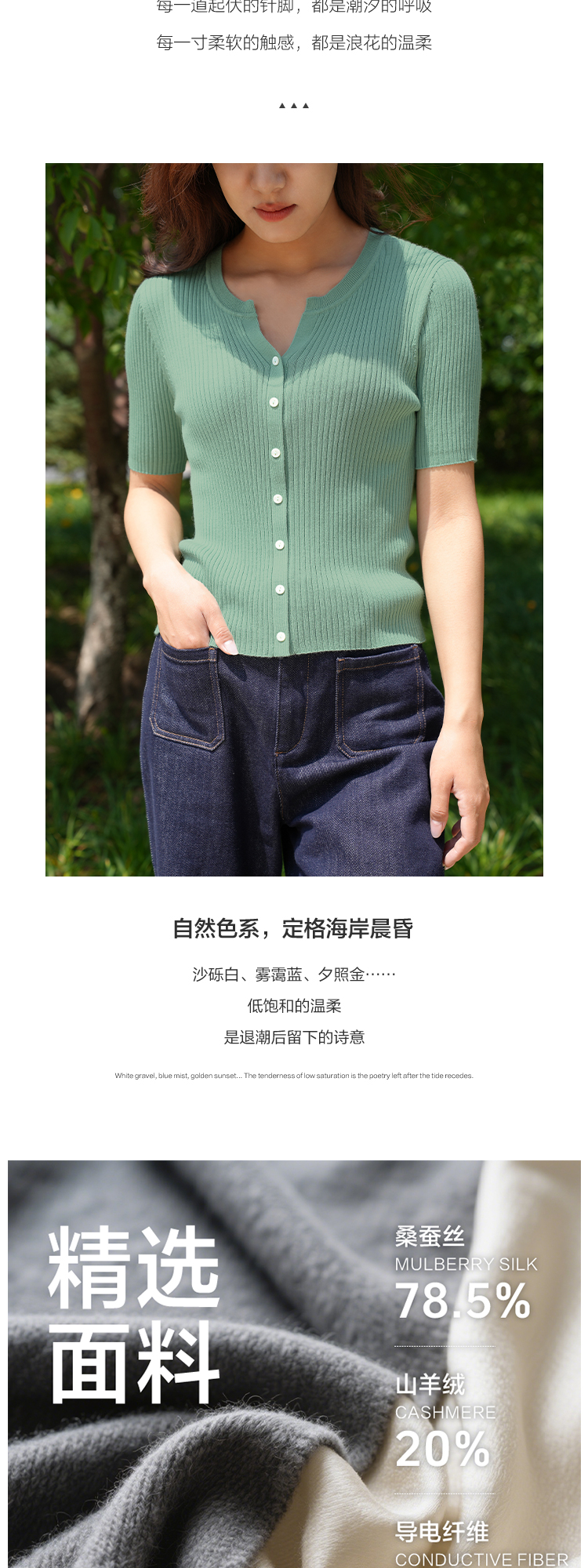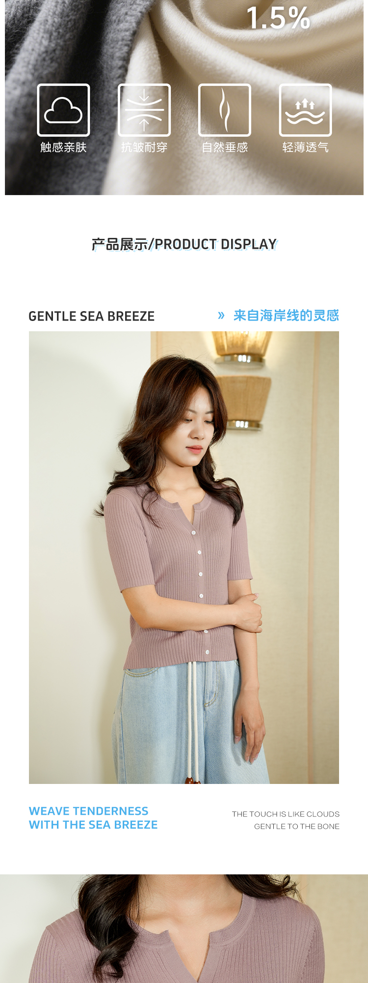 东黎 • 温柔的海风 桑蚕丝山羊绒 夏季女士精纺套衫 5303