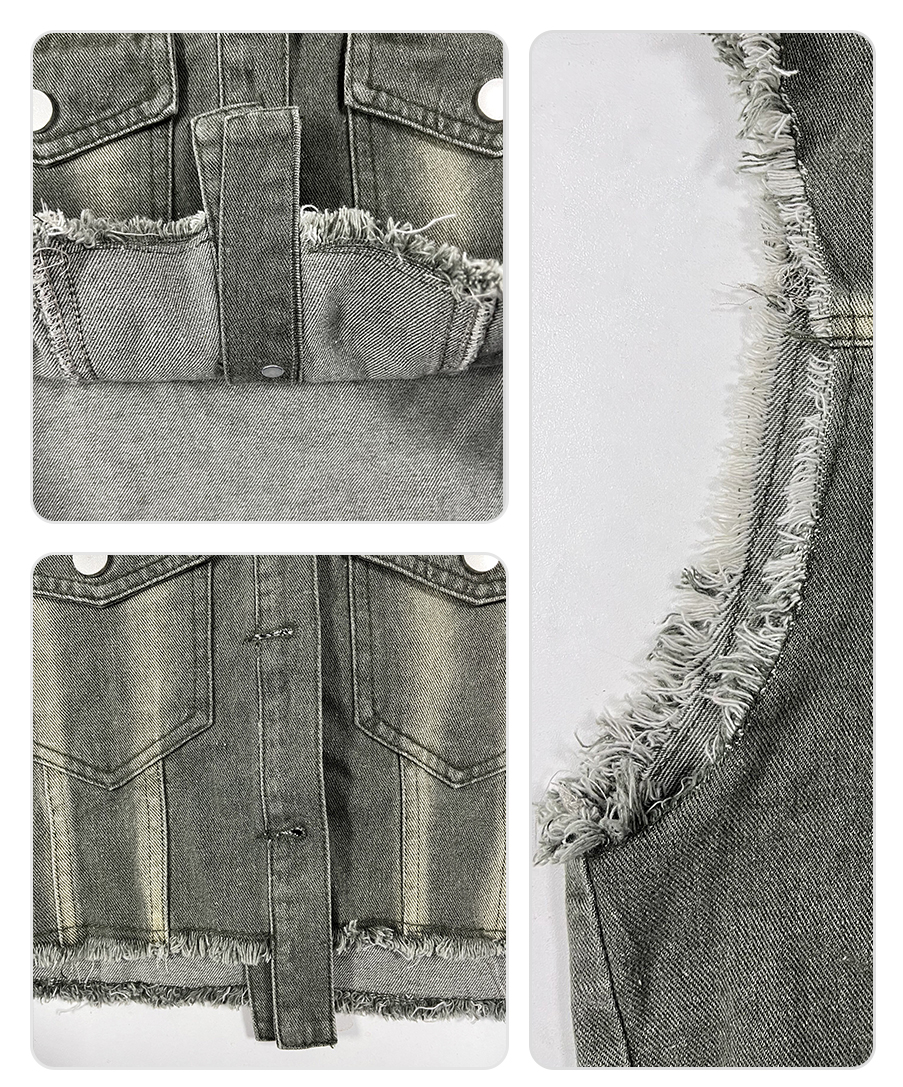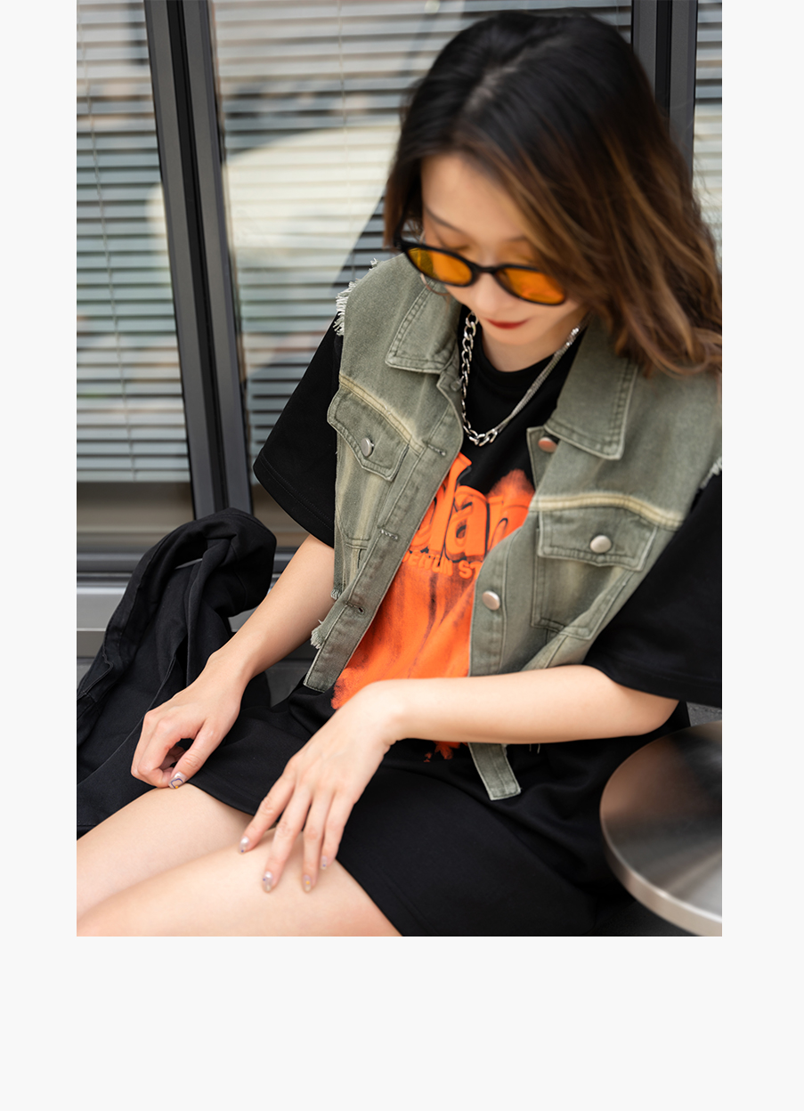 P&X设计师女装夏季 街头个性设计感牛仔短款马甲 824206088 绿色