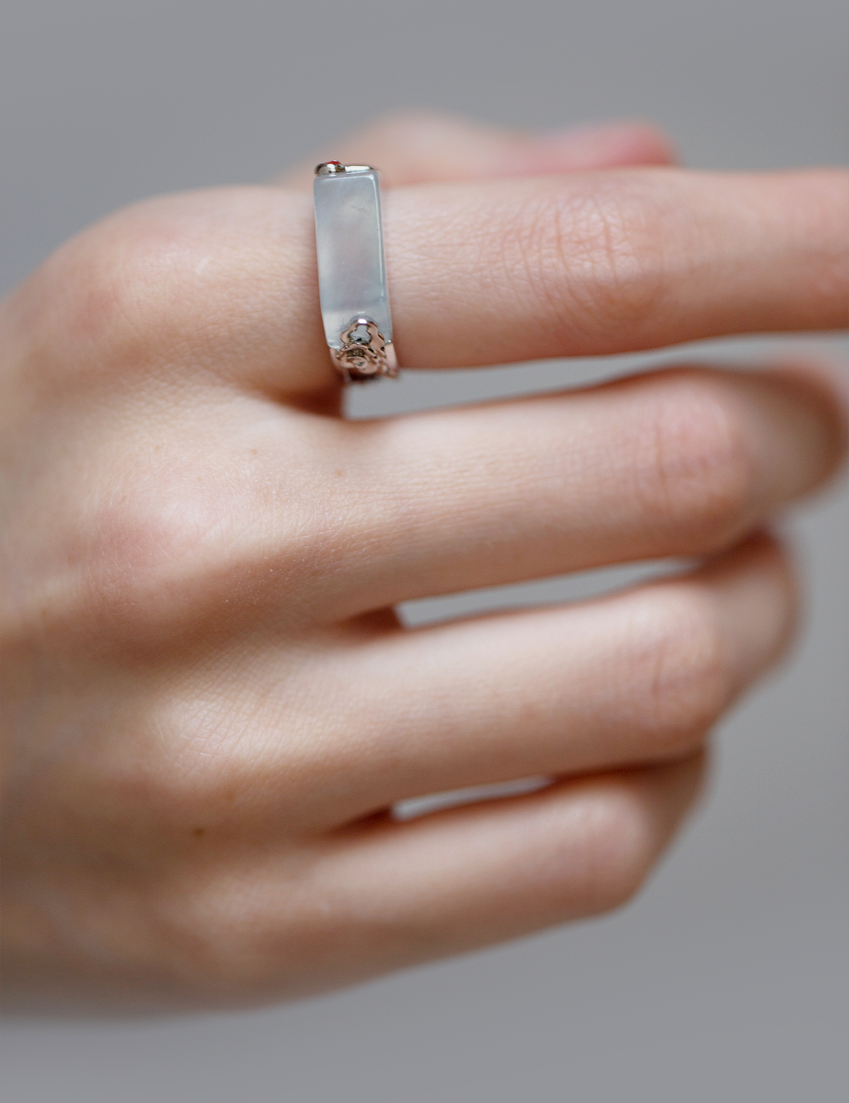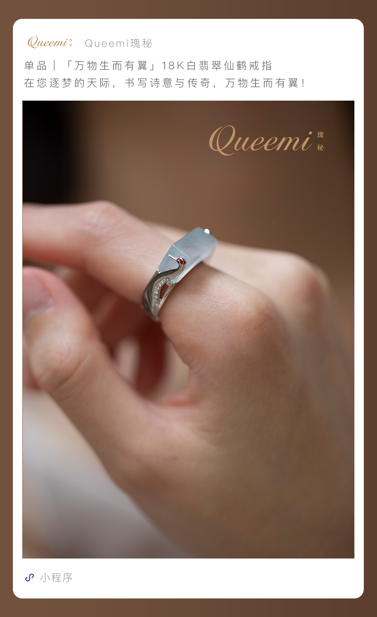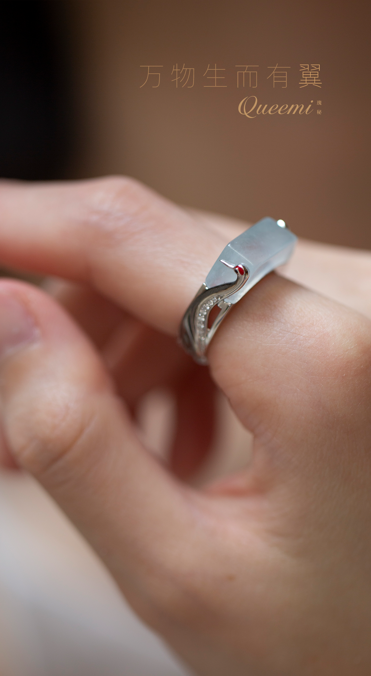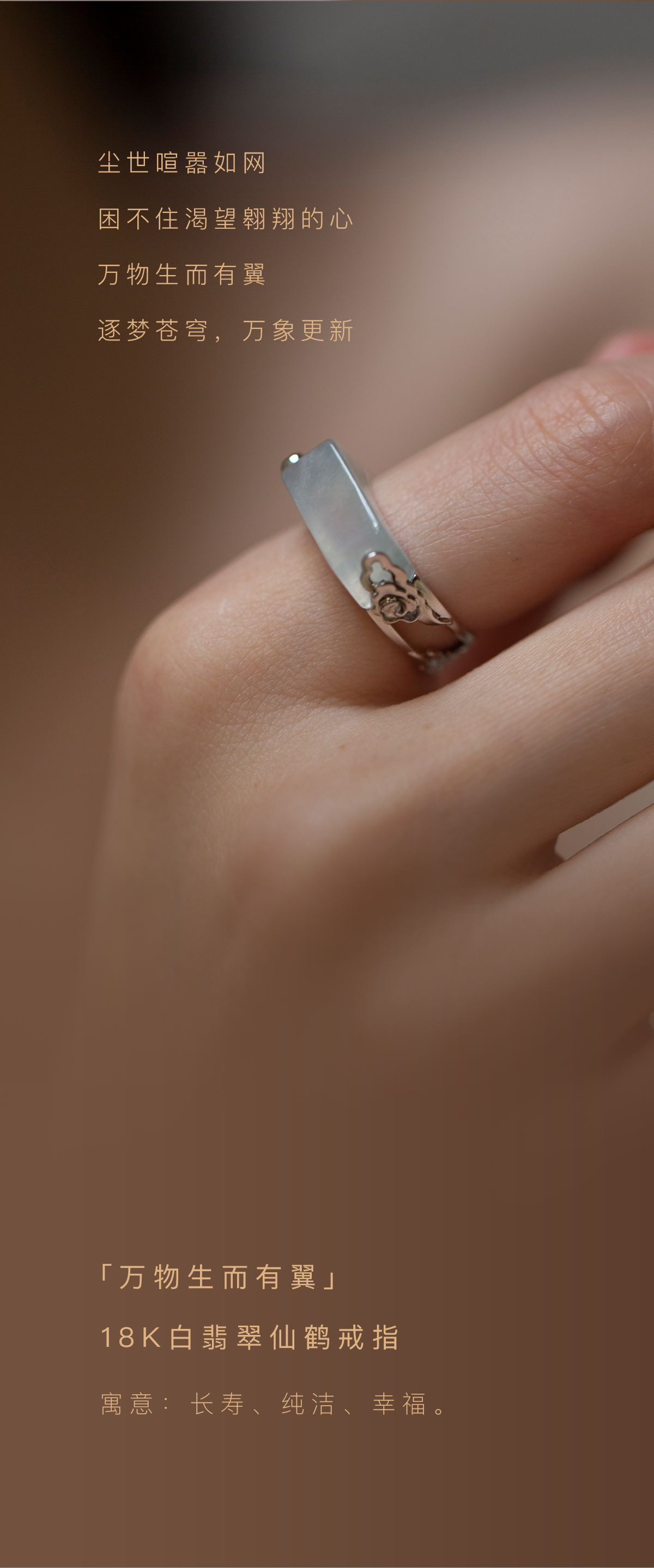 「万物生而有翼」18K白翡翠仙鹤戒指
