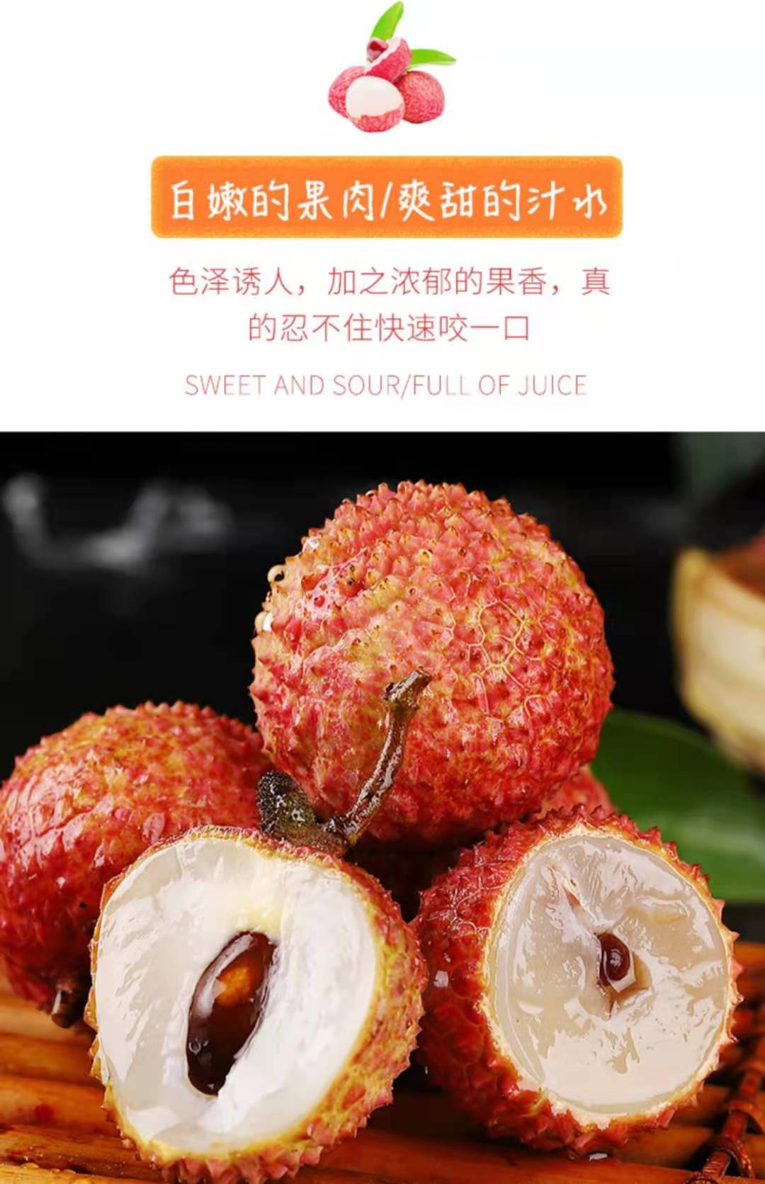【温馨提示】:收到荔枝后,别着急吃哦,天气炎热会影响口感和风味。先放冰箱冷藏2-3个小时再吃,口感更佳。