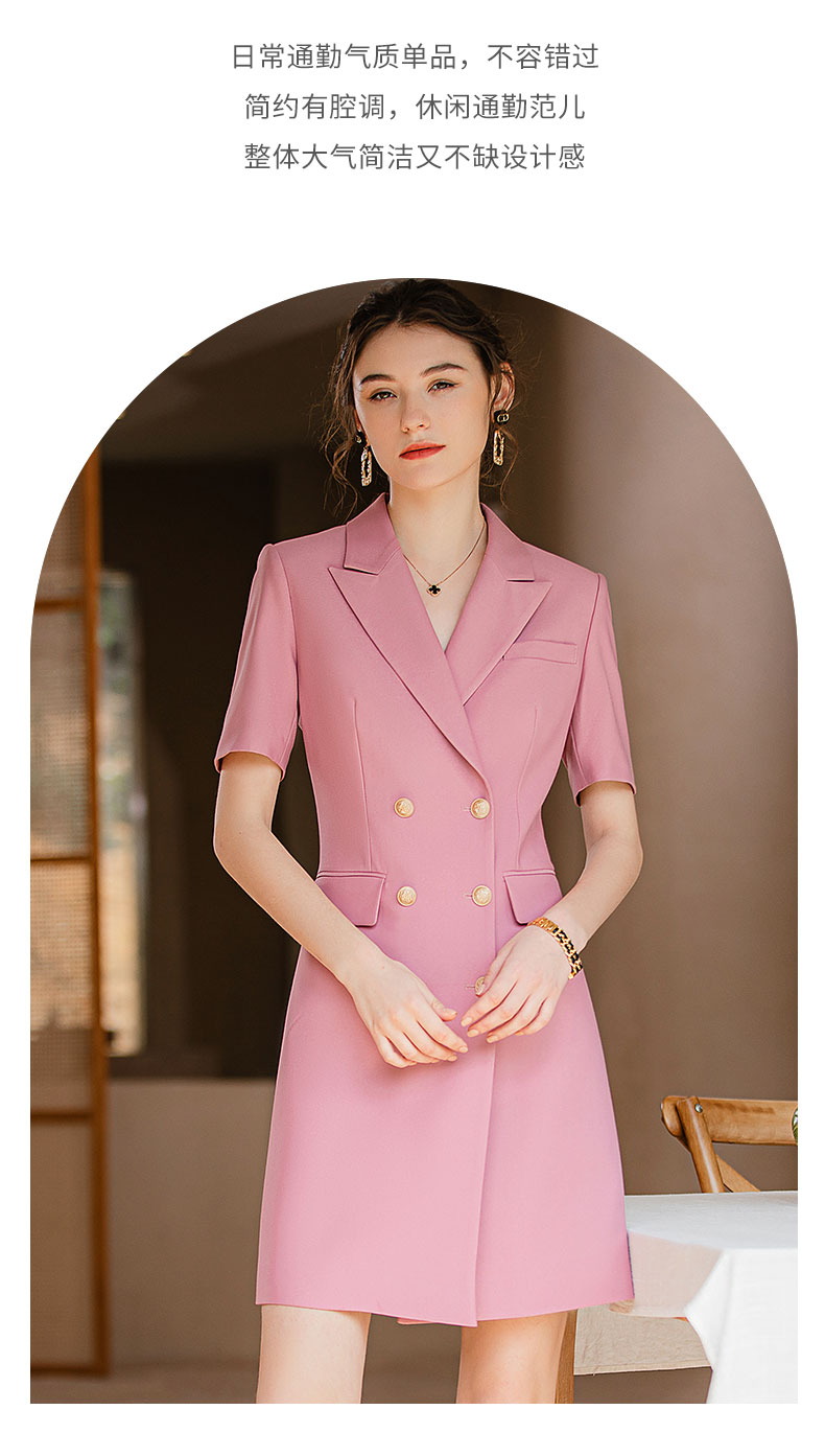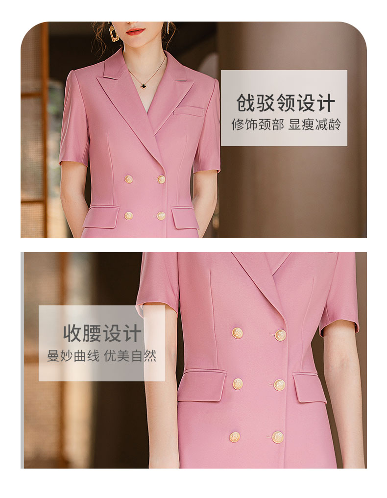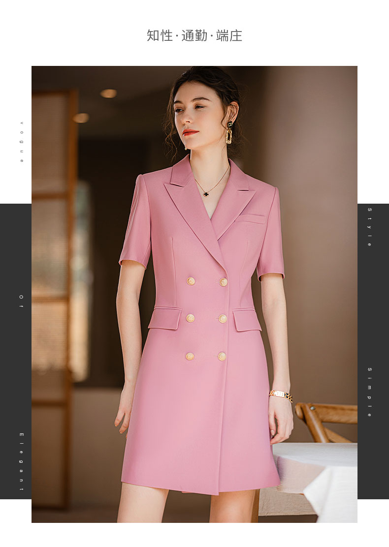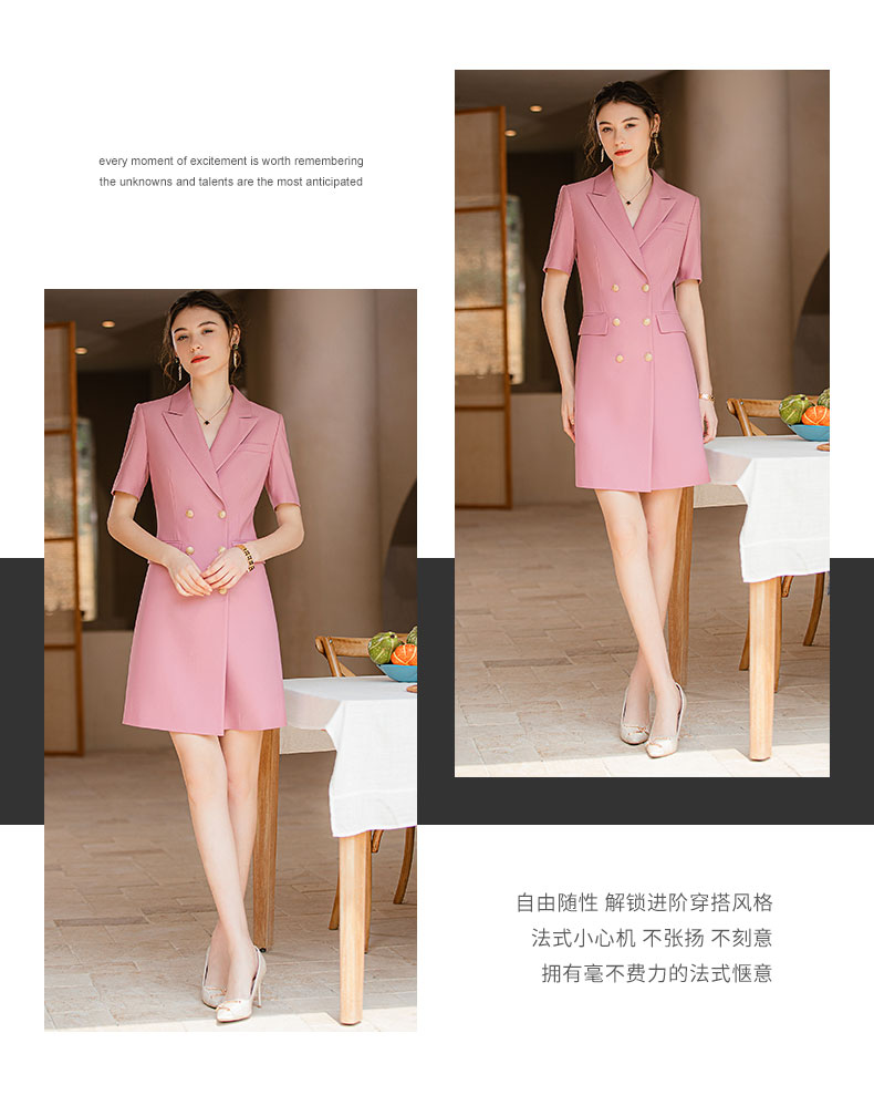 IWY/夏短袖职业西装连衣裙女粉色气质修身显瘦美容院前台接待工装Q903