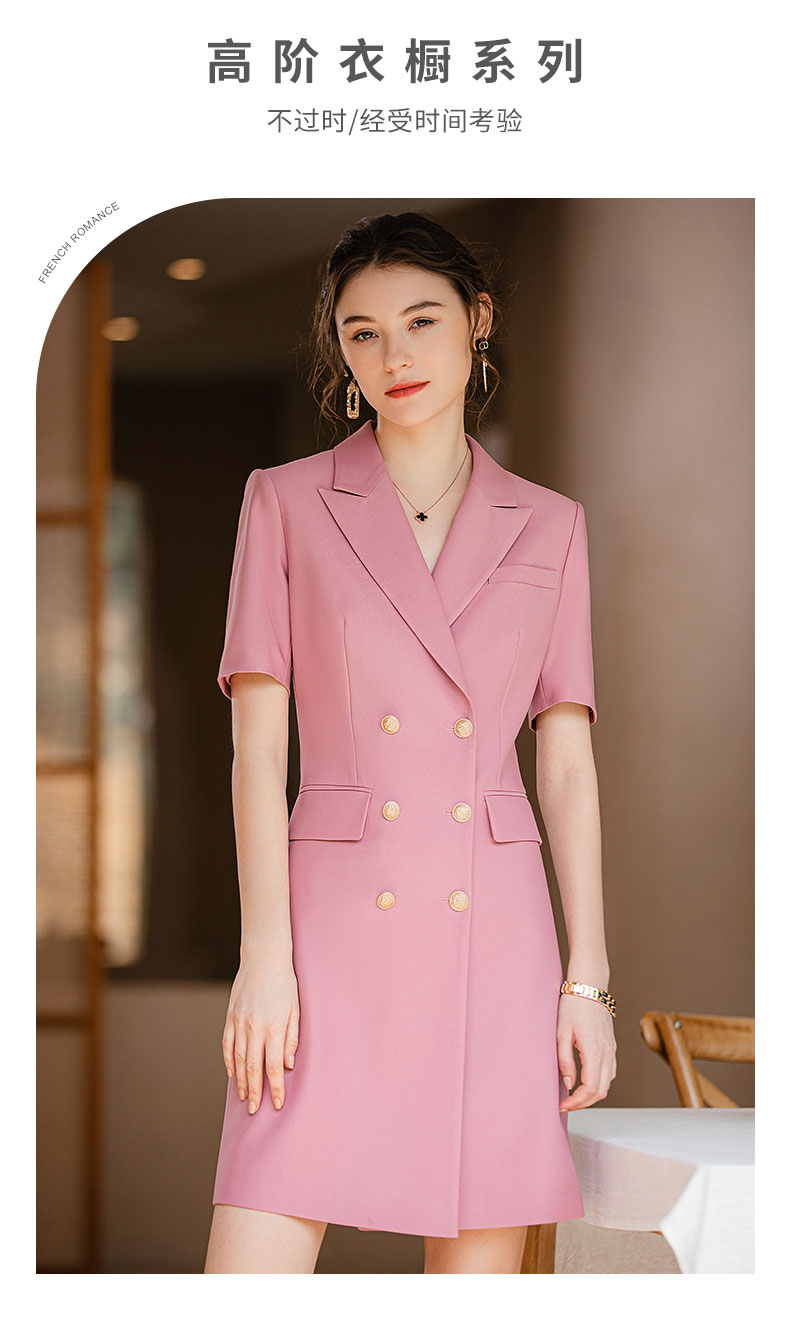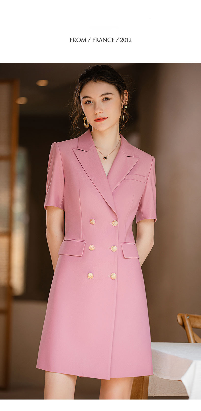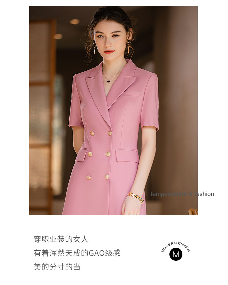 IWY/夏短袖职业西装连衣裙女粉色气质修身显瘦美容院前台接待工装Q903