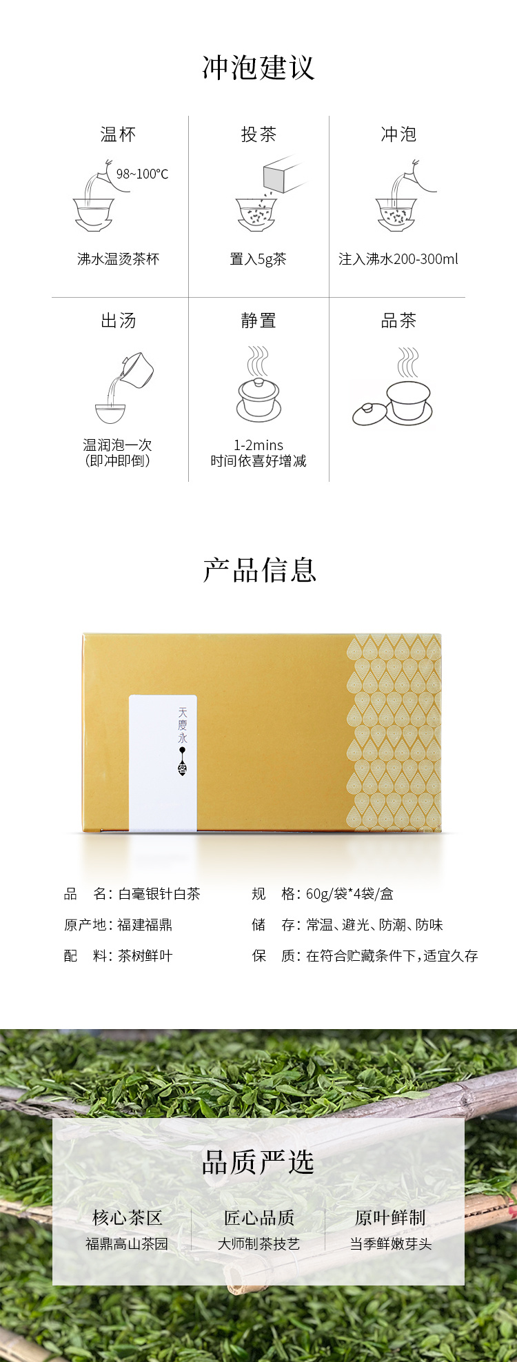 【天庆永】茗茶 白毫银针茶 白茶(散茶)60g/袋*4袋/盒 补充盒