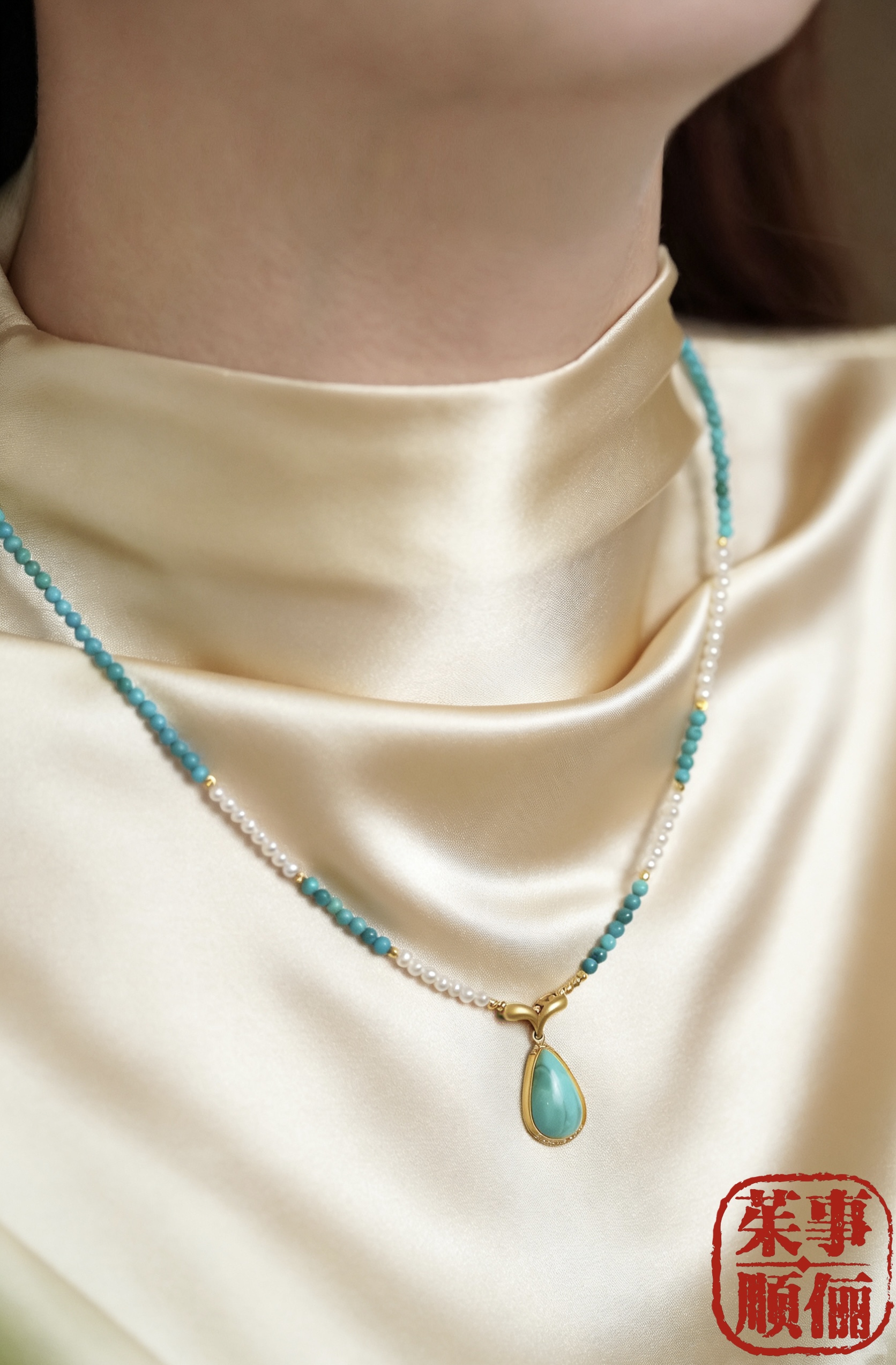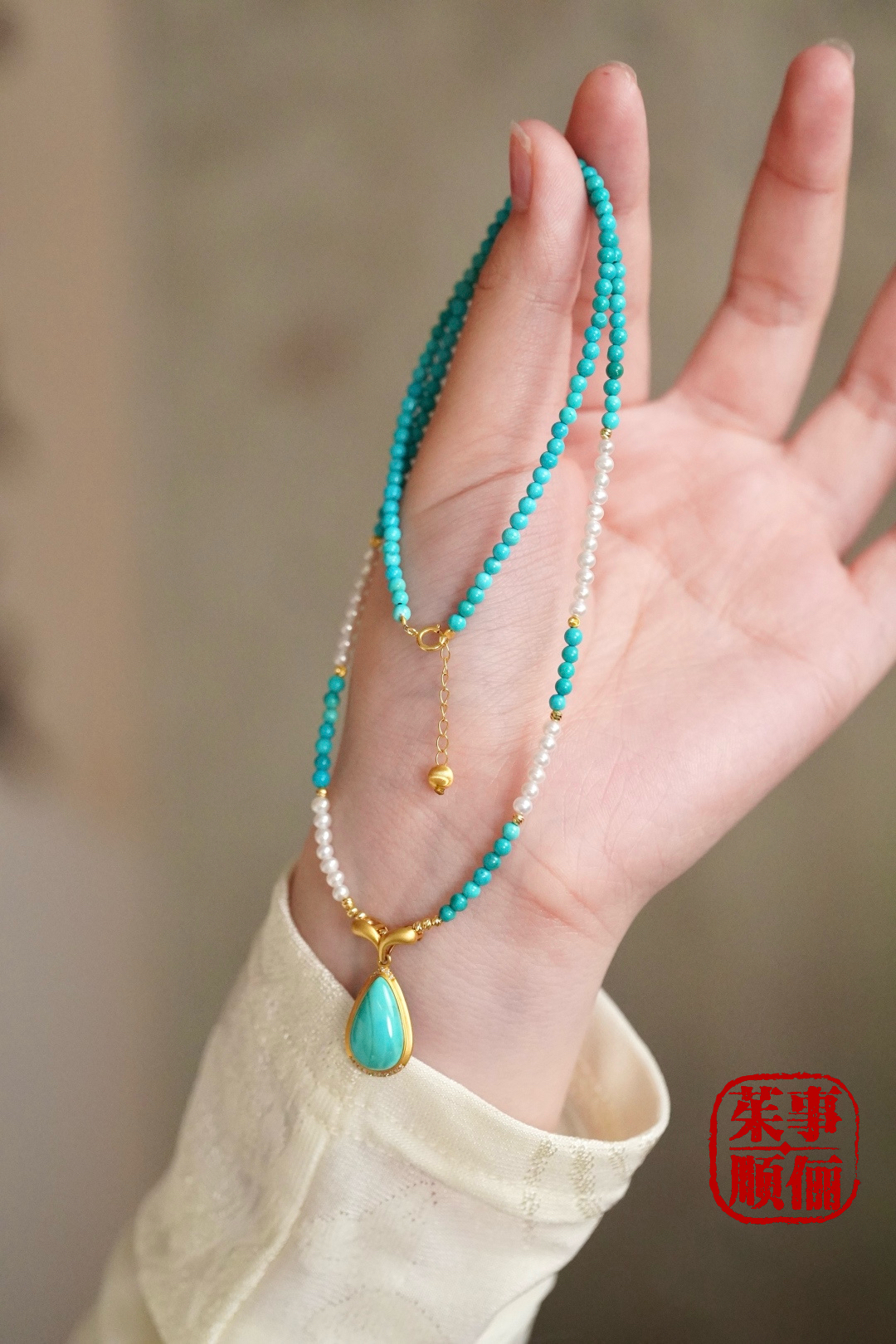 【茱事顺俪】18k黄金绿松石珍珠项链