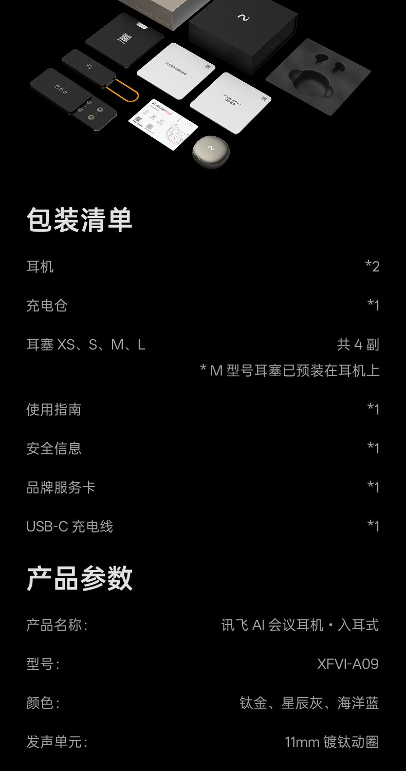 科大讯飞 AI会议耳机iFLYBUDS Pro 3