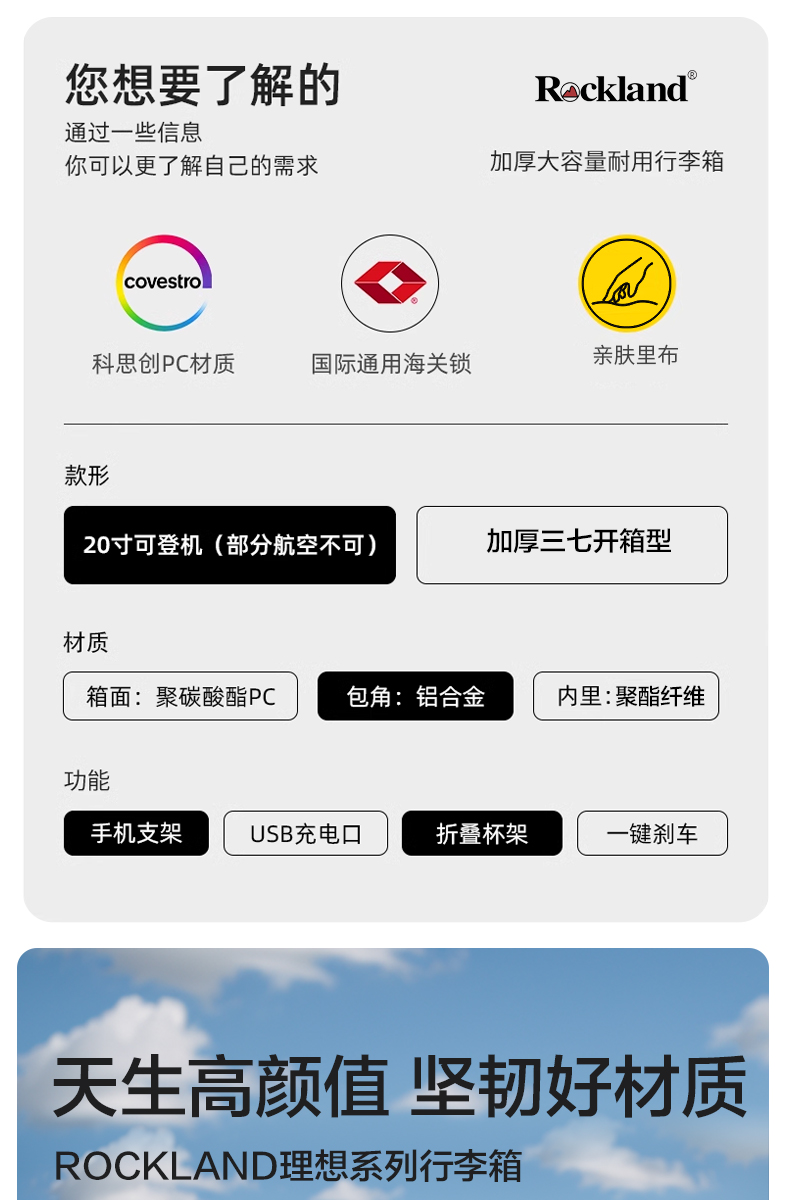 美国Rockland洛克兰理想系列拉链行李箱男女万向轮拉杆箱-CRX7377