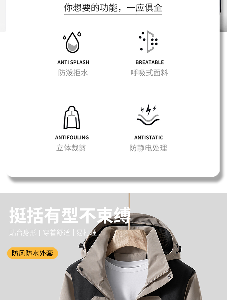 【舒适透气!时尚冲锋衣】春秋冬户外加厚防水防风外套情侣款,无论是登山探险还是户外作业,这件外套都能完美满足你的需求。ry