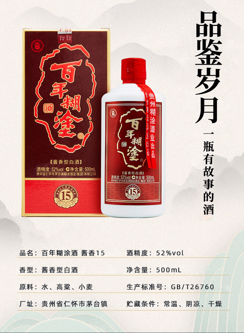 (2015年产)百年糊涂酱香15礼盒52度酱香型白酒整箱6瓶(询客服领取最新政策优惠)