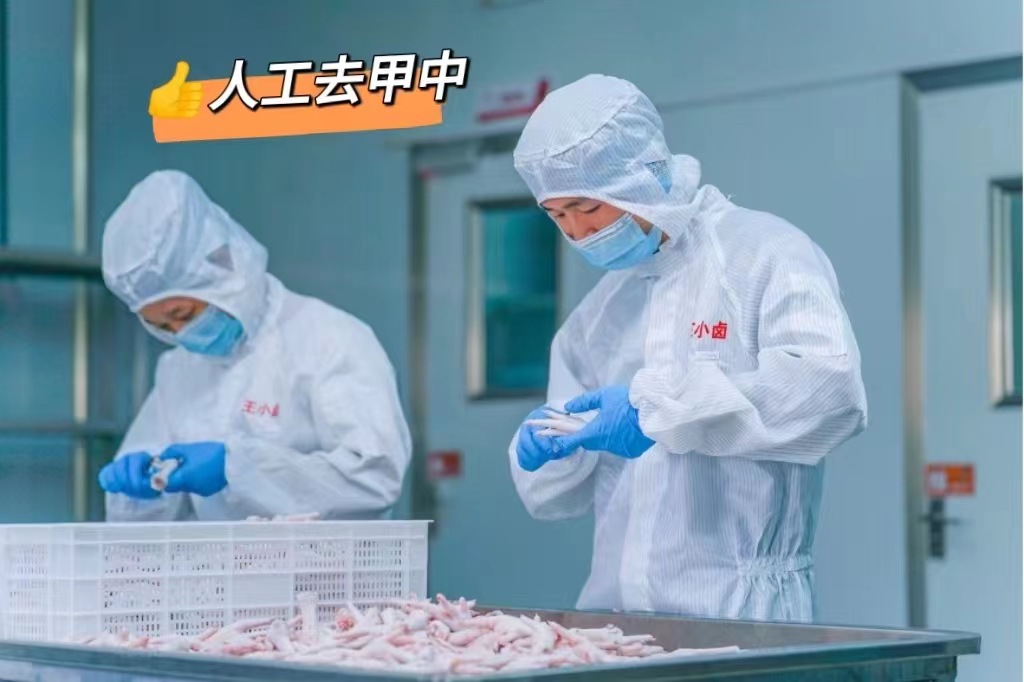 王小卤的凤爪第一步标准就是人工去甲但人工作业嘛,总会一些被遗漏的指尖但并不影响凤爪本身的好味道图