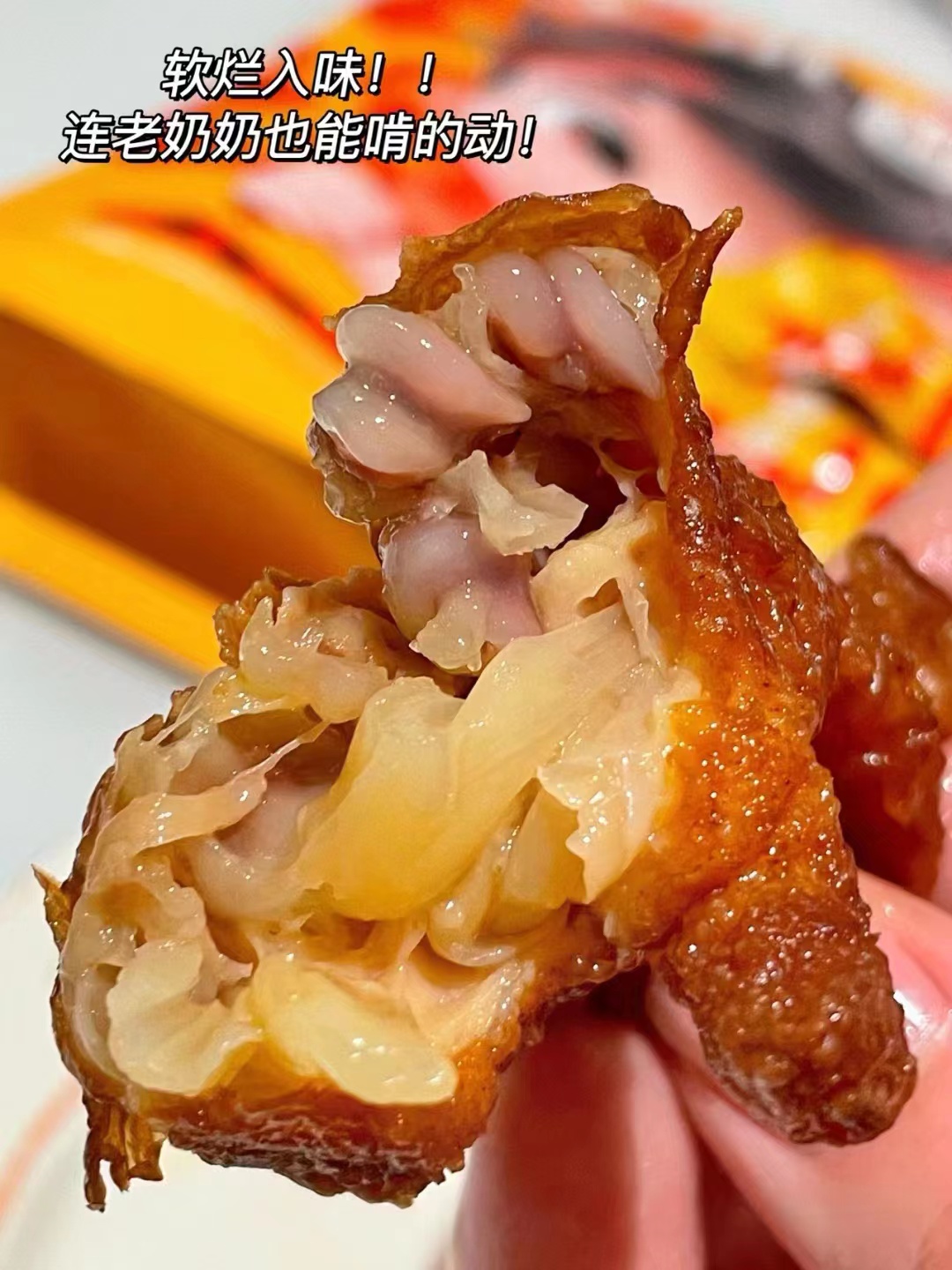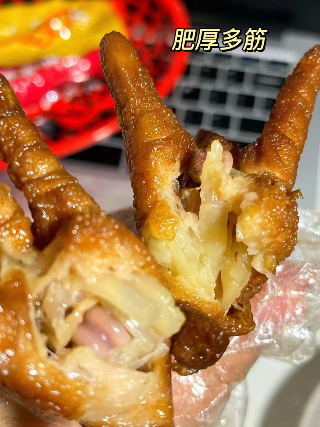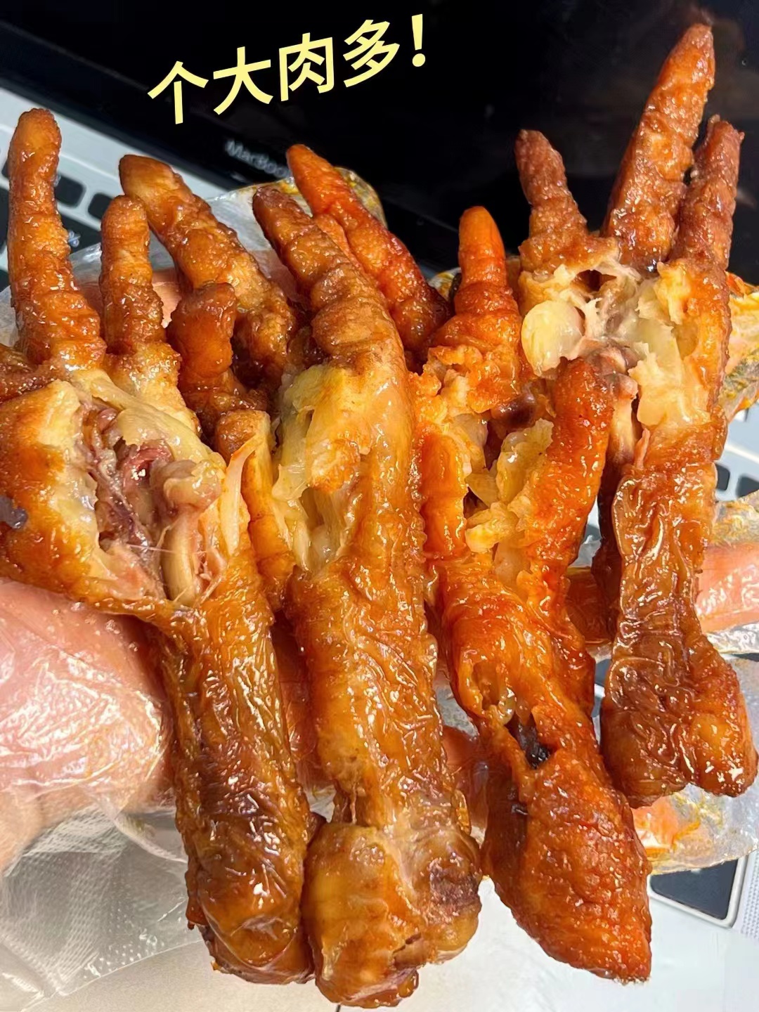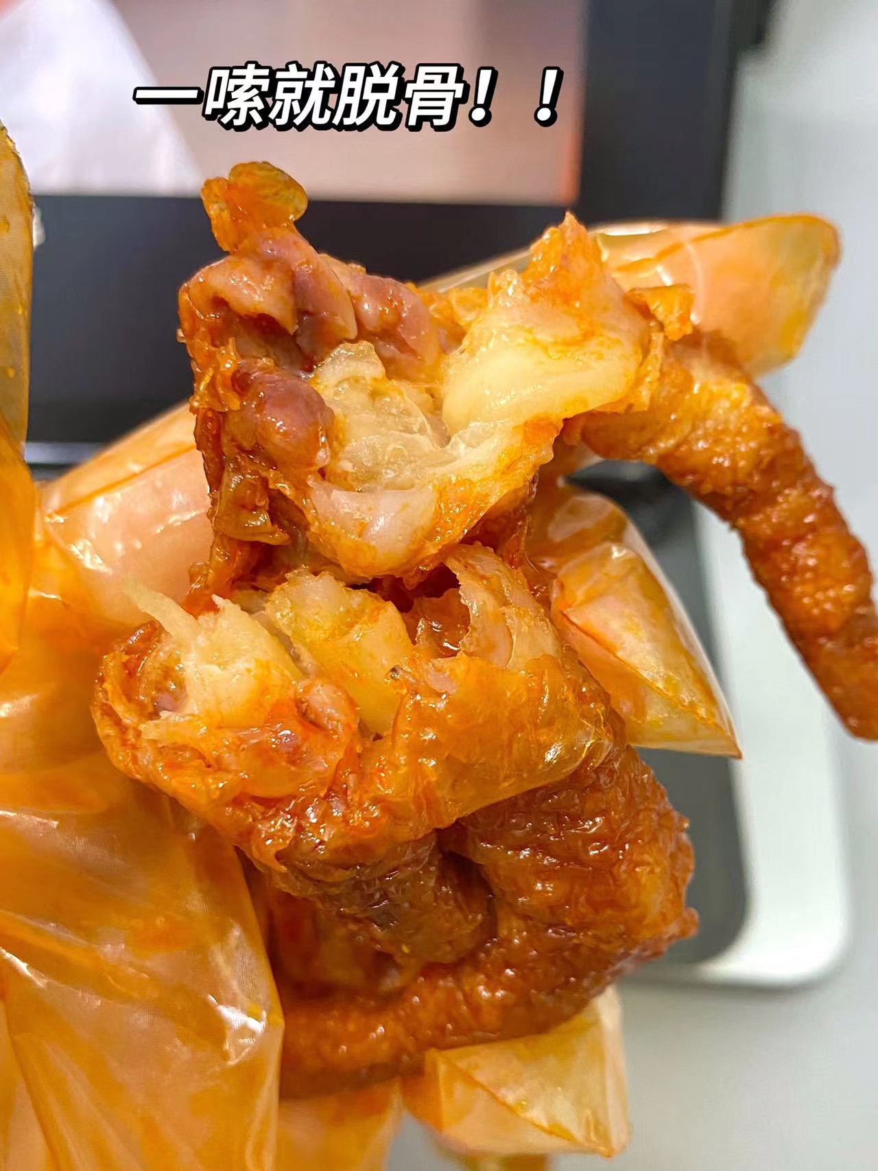 几种口味盲选都不会出错!每一个的个头都很大,肉质超级饱满软软糯糯的口感,轻轻一嗦就脱骨了每只凤爪都剪了指甲,很贴心不刺嘴先炸后卤,骨头都入味了,酥到可以直接嚼碎口下去就是化在嘴里满满的幸福感全家都爱的宝藏零食,家里牙口不好的老人都能轻松啃得动!