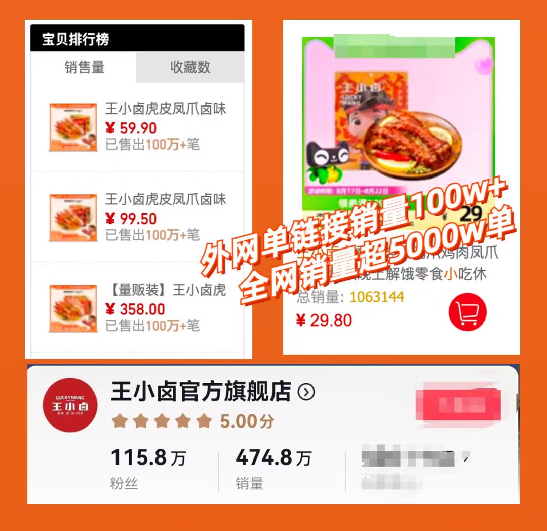 王小卤,中国虎皮凤领导品牌截止2022年12月底,虎皮凤爪热销5亿袋:天猫鸡肉零食类目销量TOP ONE,稳居天猫零食销售前三梯队;