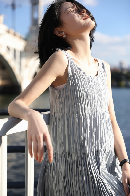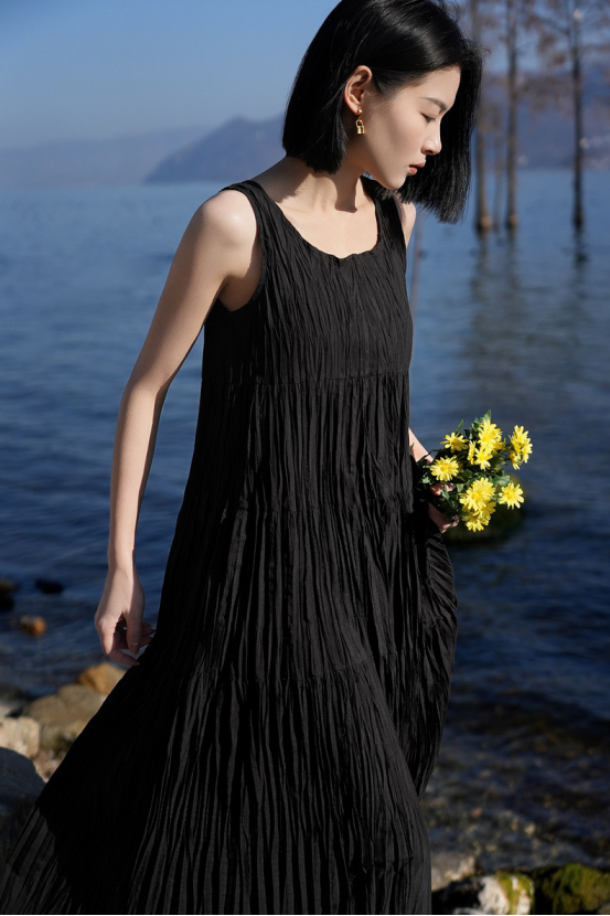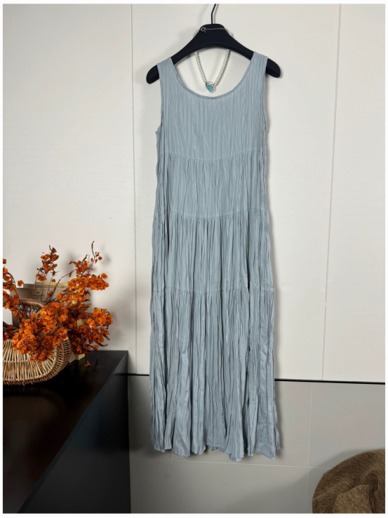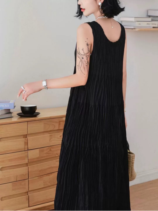 ✔️【全国包邮】 度假风褶皱背心连衣裙:✔宽松版型+无袖设计|巧妙遮副乳|藏肉显瘦🌿 ✔微肌理感面料|流动褶皱线条|实穿不平庸🔺