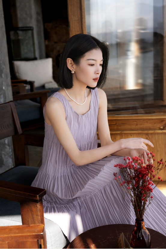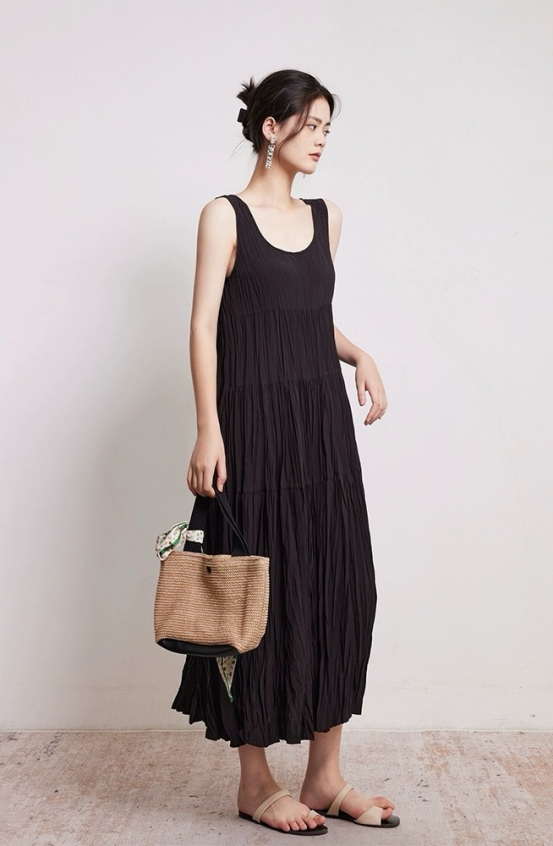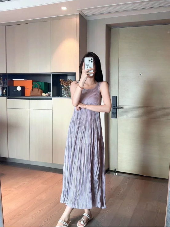 轻奢高级风女神范儿get❗『度假风 褶皱背心连衣裙』复古浪漫中带着几分甜!上身真的是很温婉大小姐!优雅浪漫又高级! 原价大几百上千的款! ✅触感爽滑,上身轻盈自在,品质超赞 ✅露肤显瘦显脸小 ✅A字版型,胖瘦都好穿,包容性强不挑人 颜色:黑色 紫色 蓝色 尺码:S M L