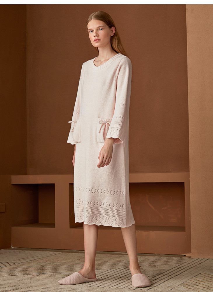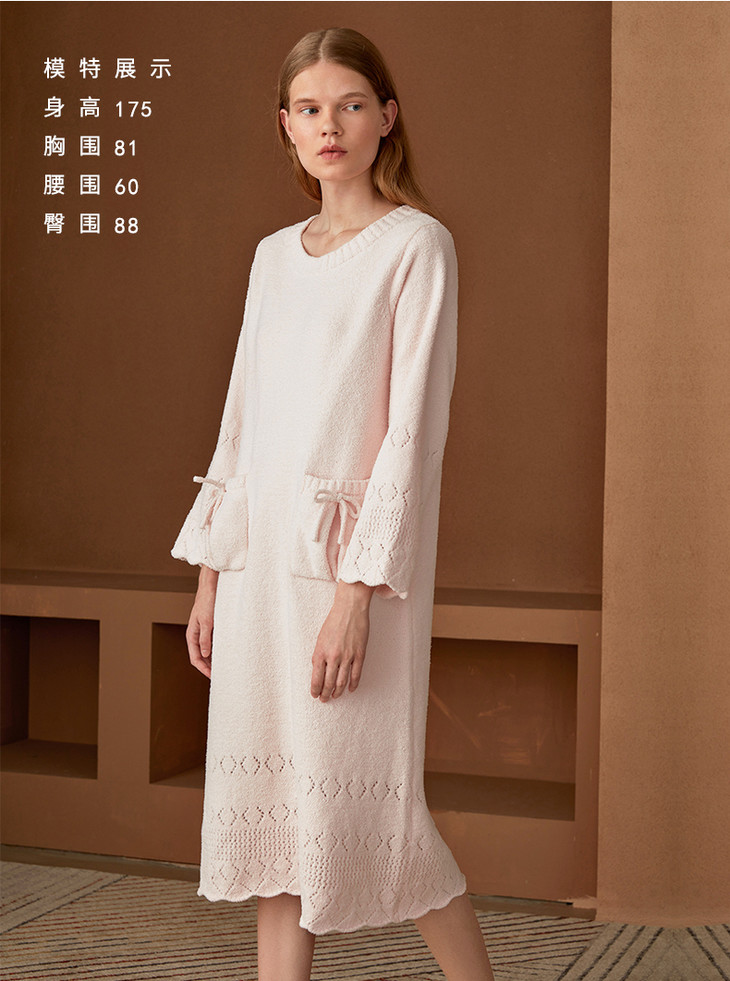 HSIA遐 长袖睡裙可外穿休闲保暖睡衣羽毛纱圆领宽松家居服女秋冬