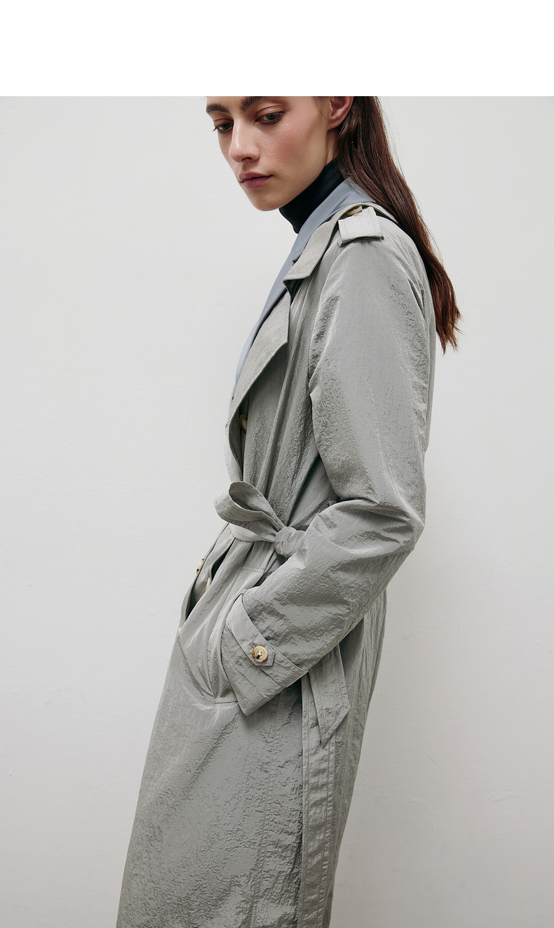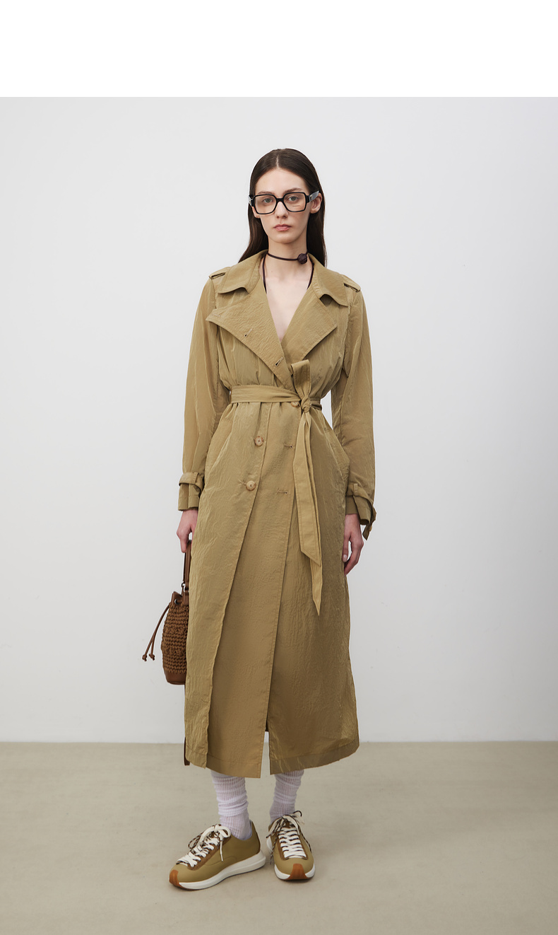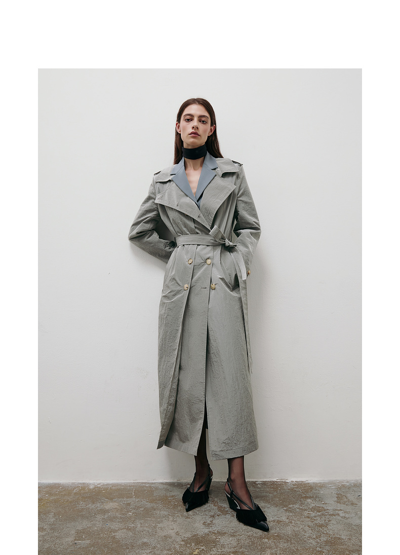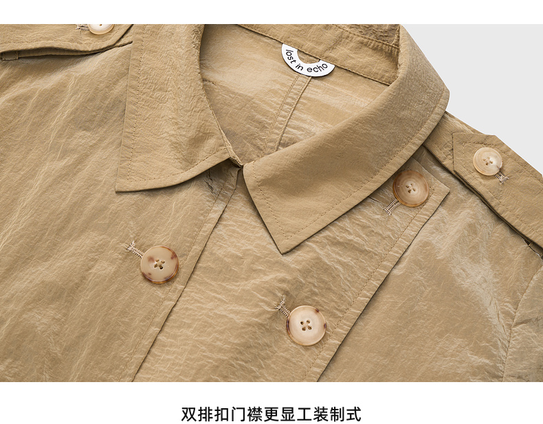 lost in echo2025春夏新款双排扣直身轻薄高级褶皱感长款风衣外套