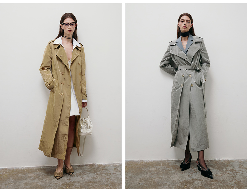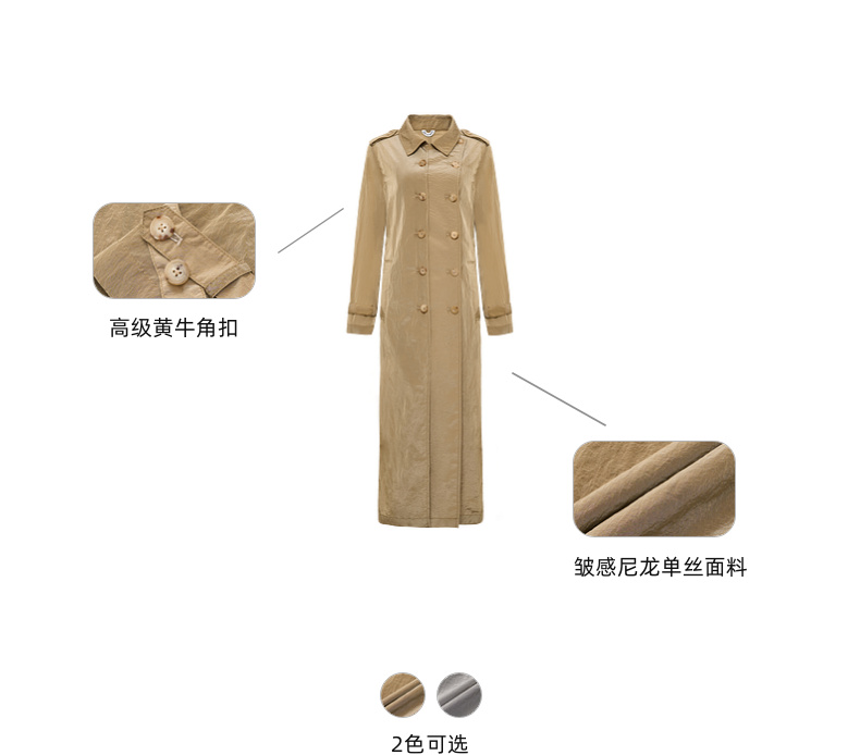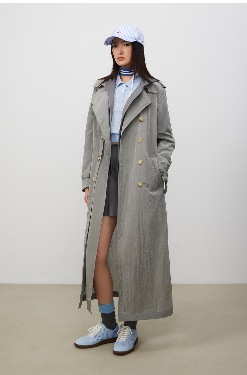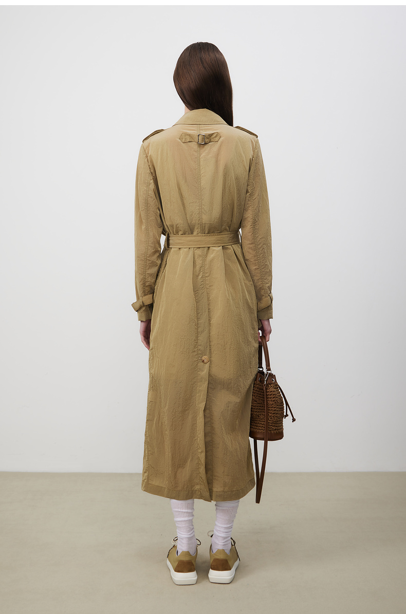 lost in echo2025春夏新款双排扣直身轻薄高级褶皱感长款风衣外套
