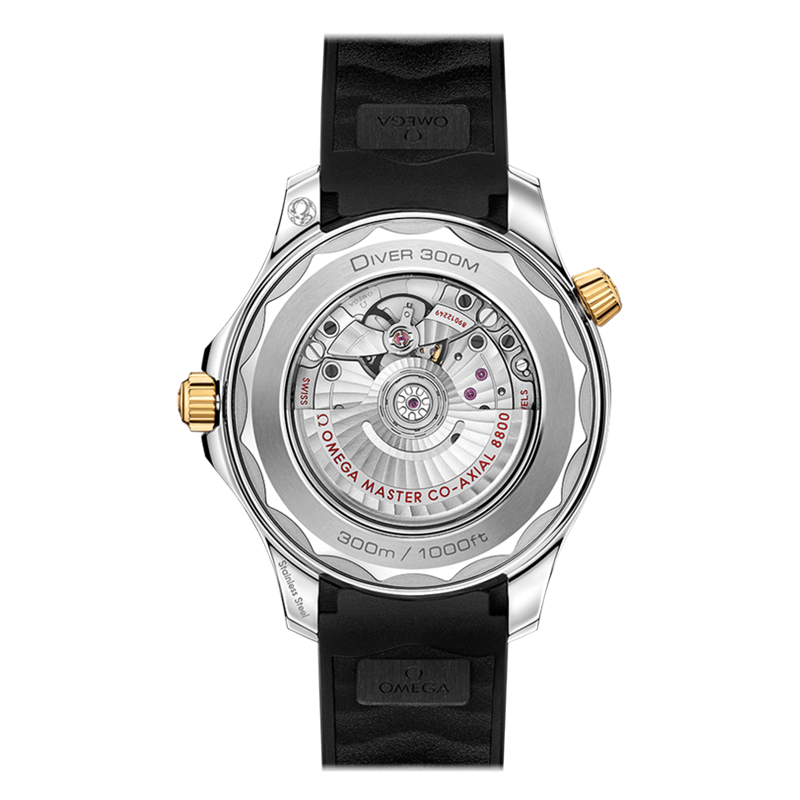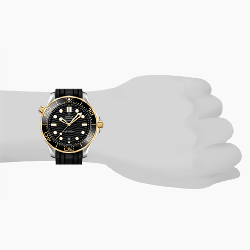 镜面材质 | 蓝宝石水晶玻璃 | 表盘 | 精钢与黄色18K金表壳 表圈采用黑色陶瓷,潜水刻度经 OMEGA Ceragold®技术制成。表盘亦以抛光黑色陶瓷制成,饰以激光镌刻波纹图案,6点钟位置设有日历窗口。 镂空指针和浮雕小时刻度由黄色18K金制成,并覆以白色Super-LumiNova夜光涂层,而排氦气阀门则以圆锥形造型呈现。 |