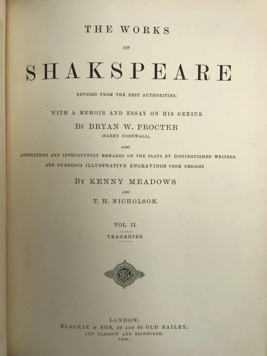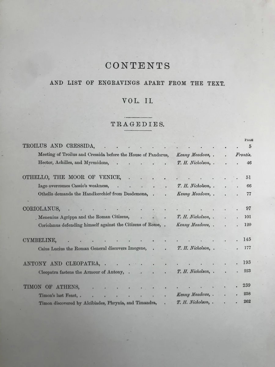 约19世纪后期 莎士比亚作品集(卷2,奥赛罗、辛白林等) 肯尼·梅多斯版画插图 漆布精装大16开