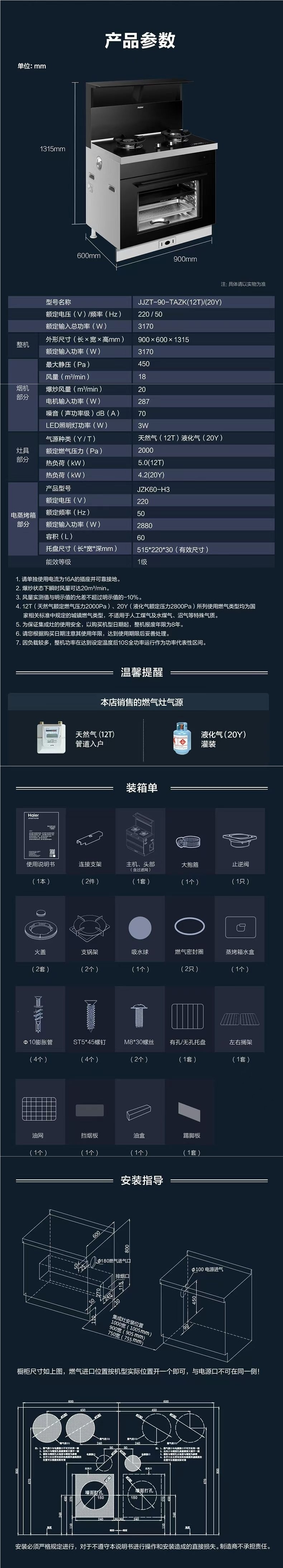 海尔(Haier)集成灶 JJZT-90-TAZK(12T) 蒸烤一体
