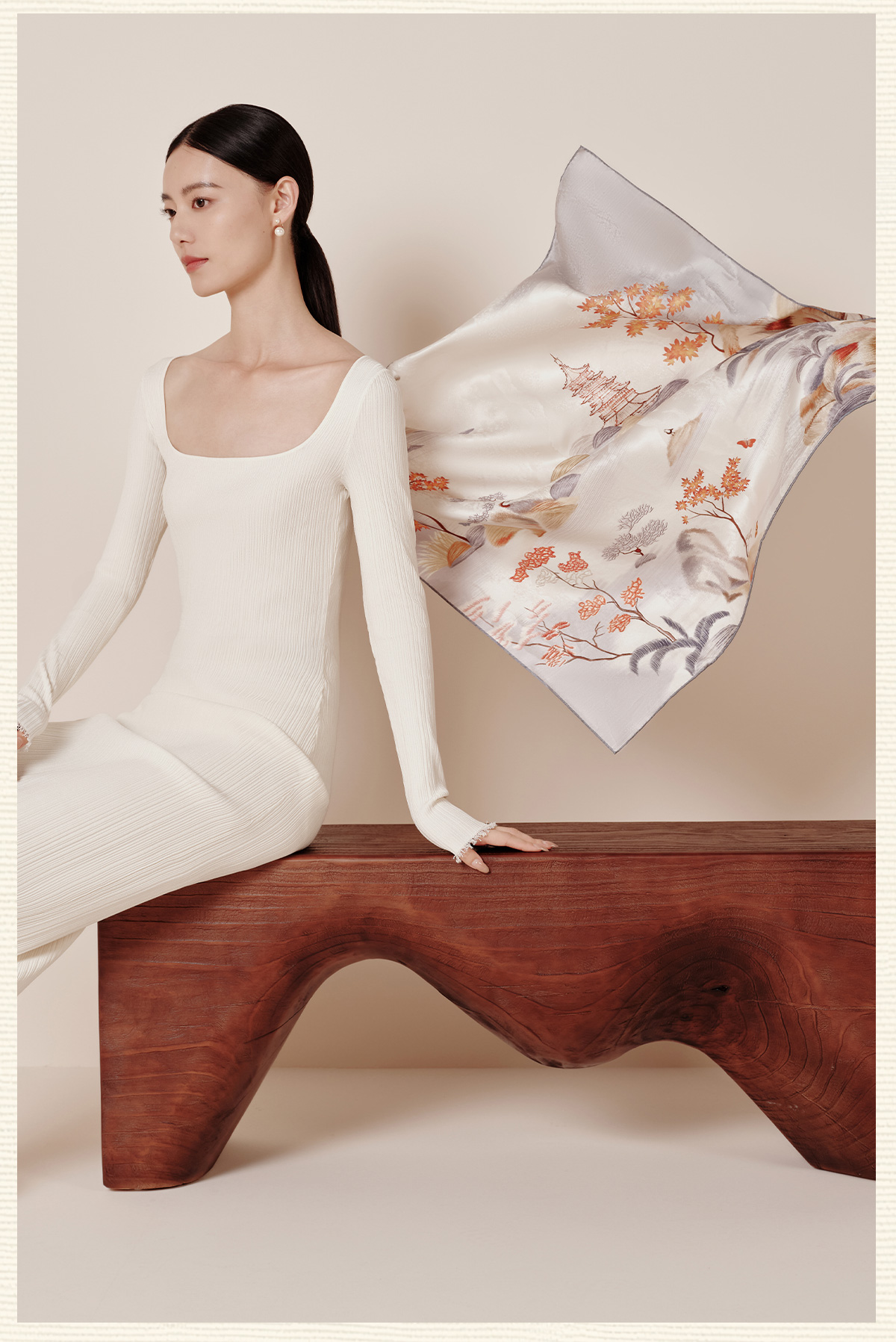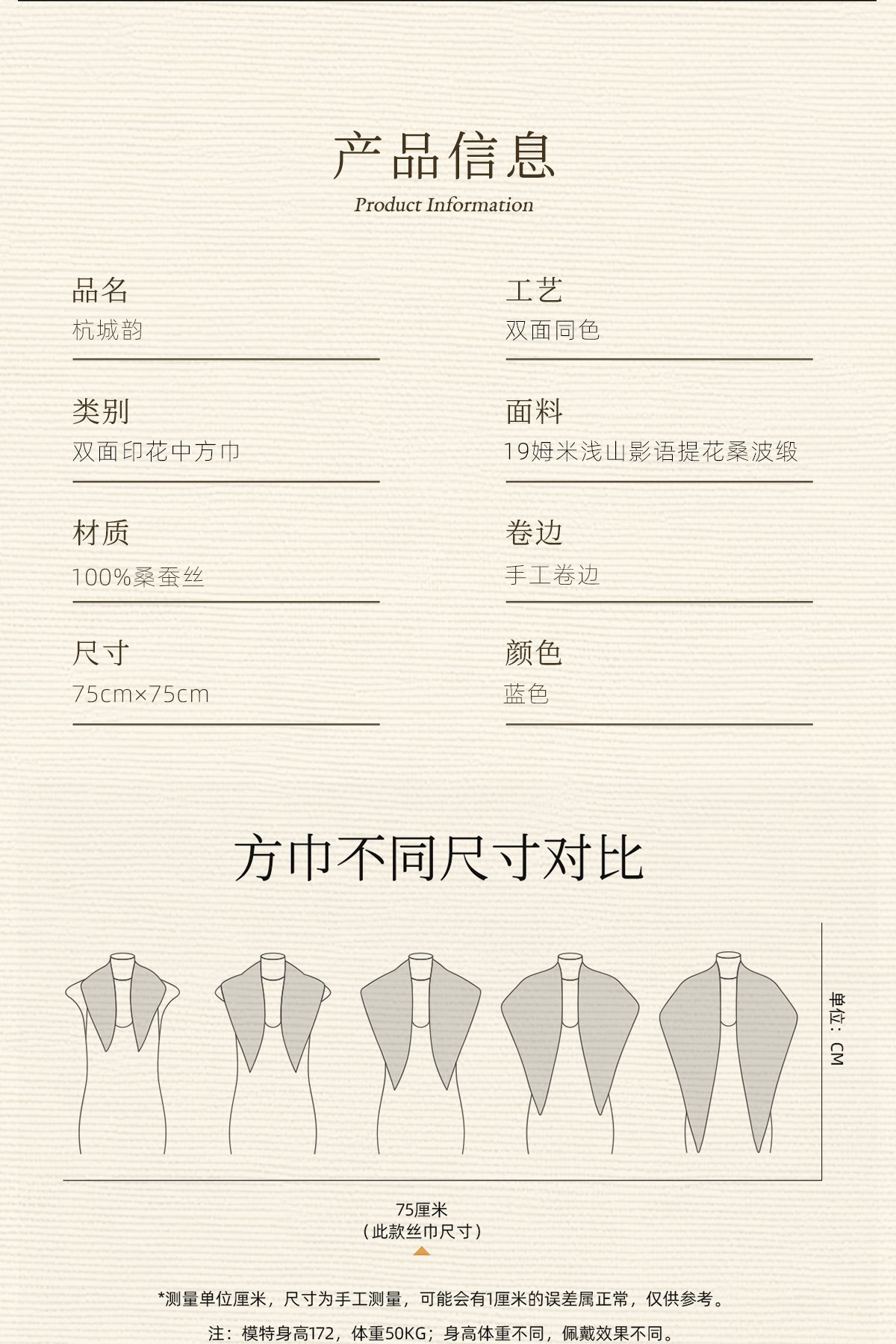 万事利重磅真丝丝巾提花工艺桑蚕丝中方巾杭城韵
