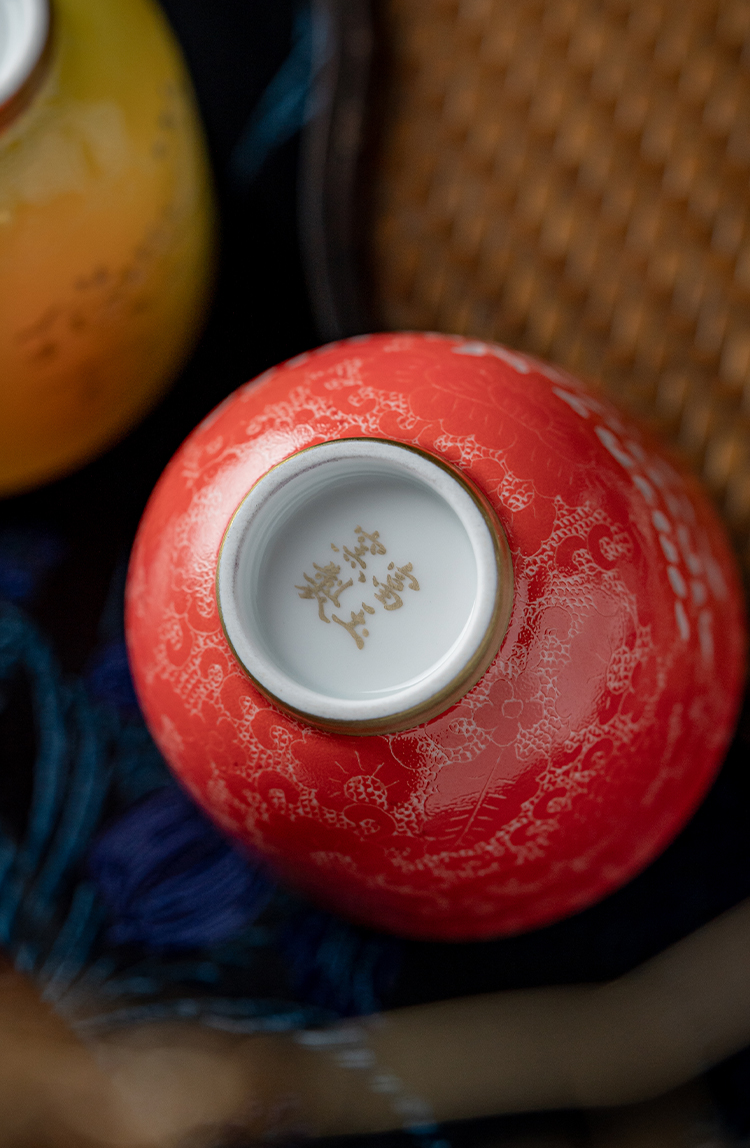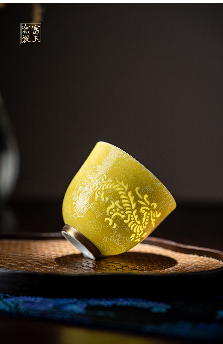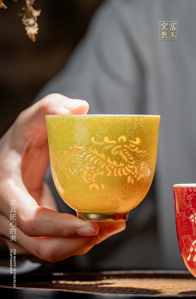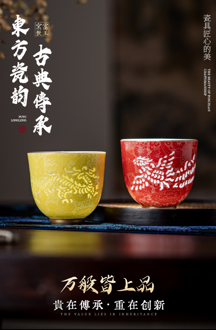 富玉窑 景德镇陶瓷茶杯主人杯国潮情侣扒花龙凤对杯景德镇高档个人专用送礼品