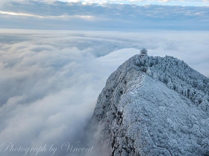 峨眉山的云海盛景,佛家叫做“银色世界”,山风乍起时,云海翻涌,远处群峰似海中小岛,雄伟景色让人如痴如醉。